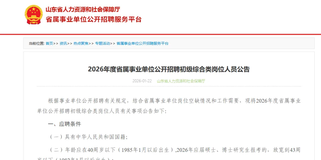 2026年山东事业单位统考公告陆续发布中,时间节点如下