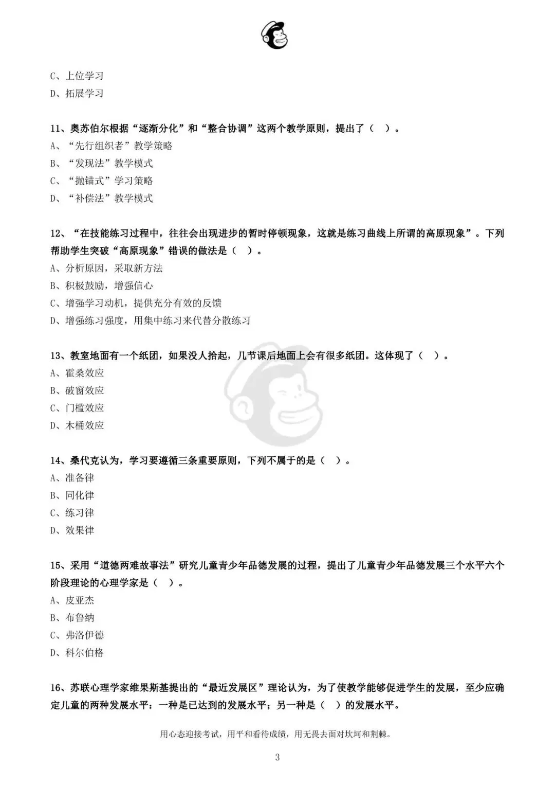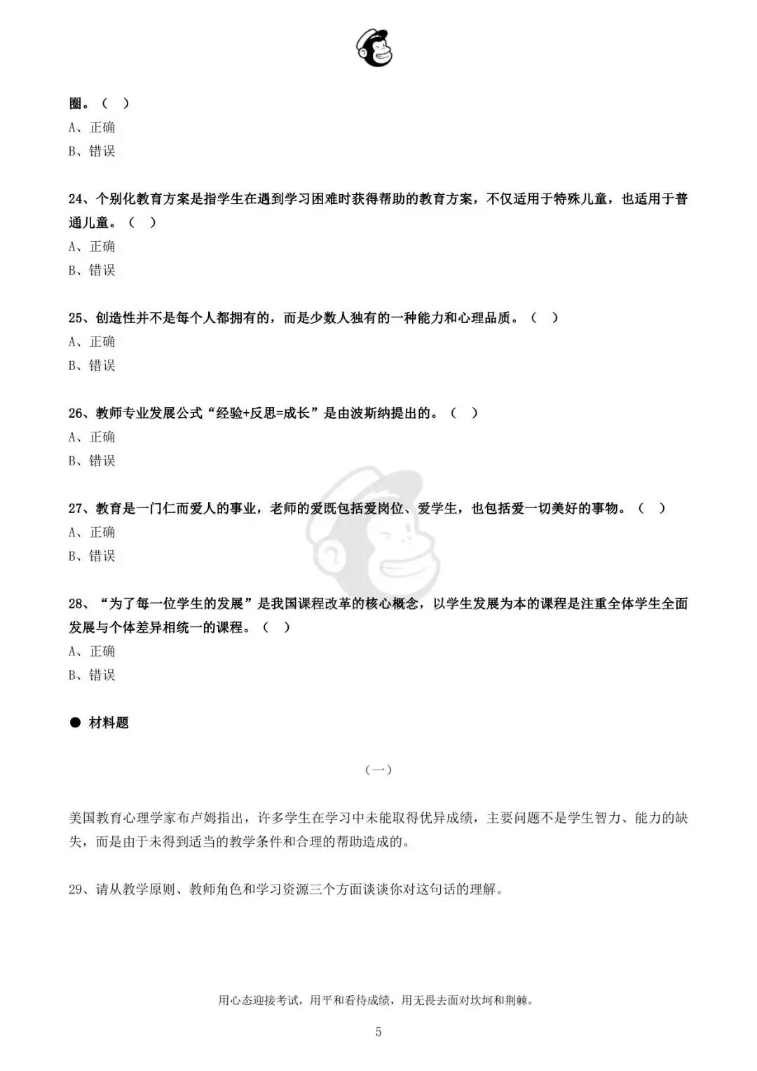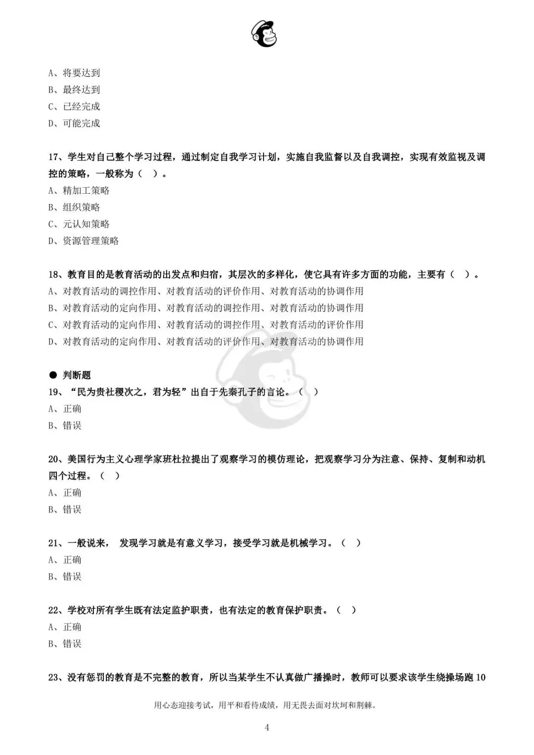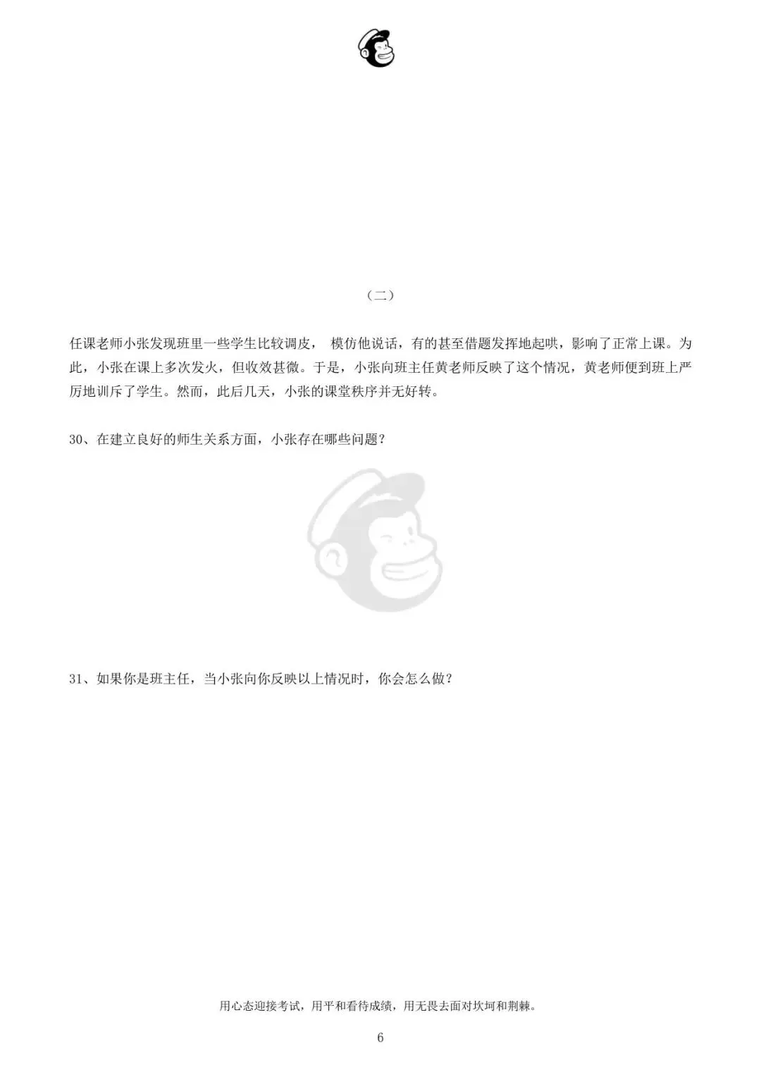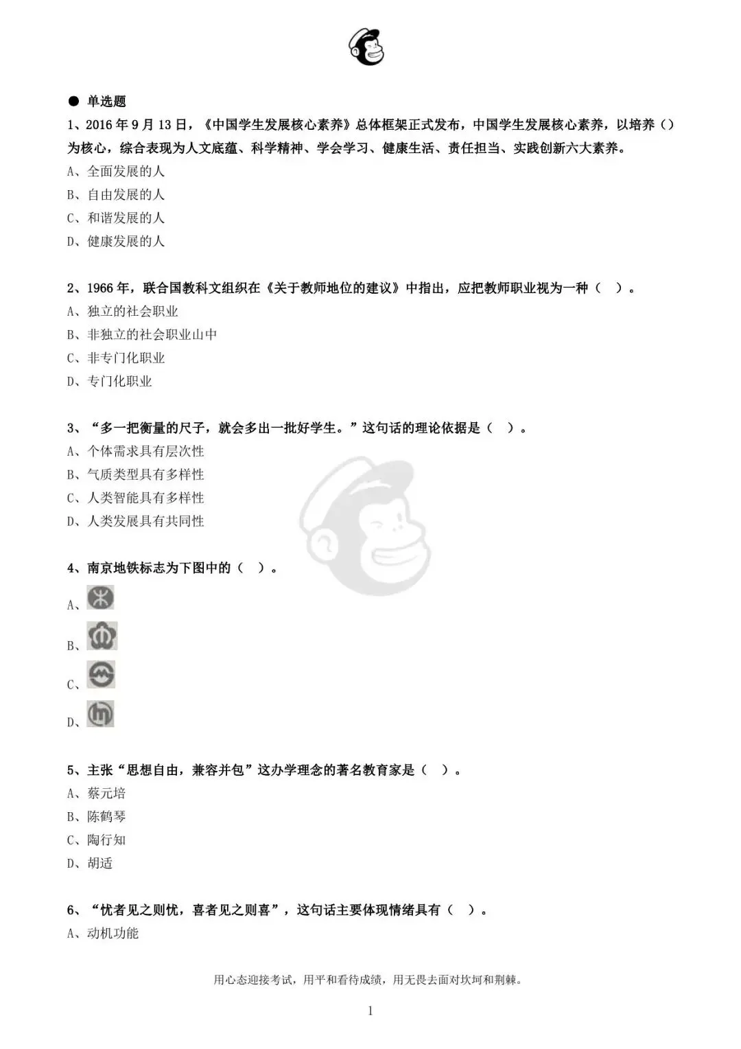 用心态迎接考试,用平和看待成绩,用无畏去面对坎坷和荆棘。