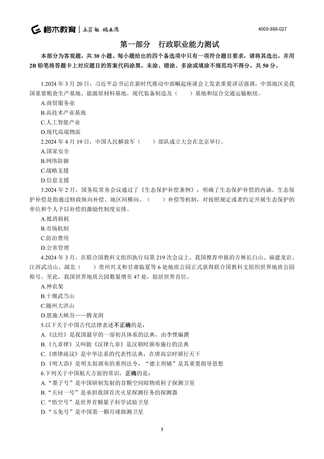 >2024年湖北三支一扶笔试真题