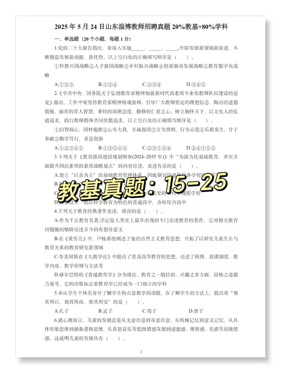 >【刷真题啦】淄博市教师招聘历年真题,熬夜刷