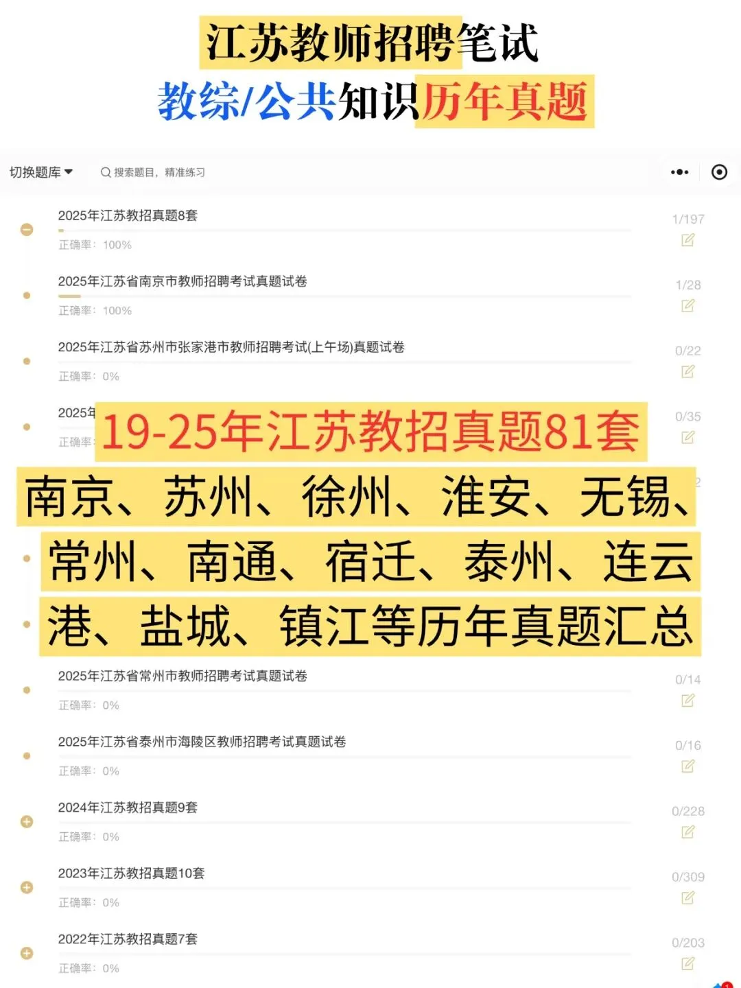 【26江苏教招】江苏教师招聘笔试教综历年真题小程序81套题库 !