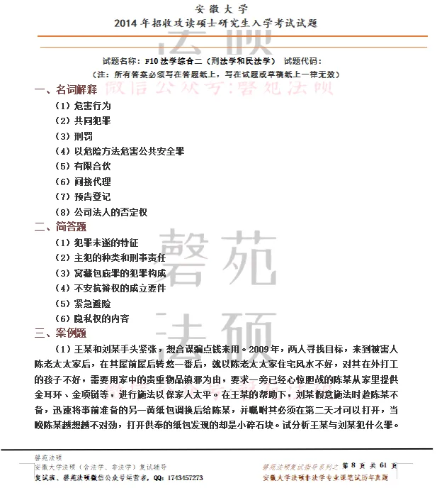 当前位置:首页>笔试真题>年前最后几天【真题】安徽大学非法学复试真题(专业课笔试+专业课面试+英语口语面试)全套