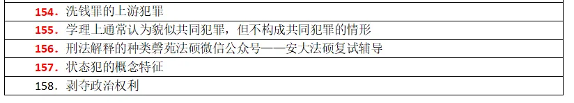 3.专业课口试真题:本套资料通过整理,专业课口试题目(刑法+民法),仅2020年整理口试题为278道加上21年、22年、23年、24年、25年资料,以及19年之前年份题目,共整理专业课口试题750多道,全为安大法硕非法学参加复试考生复试后反馈。其中包含重复的题目,没有删减,是为了方便考生知道哪些题目在当年是重复考察过的,从而知道这是重点内容。