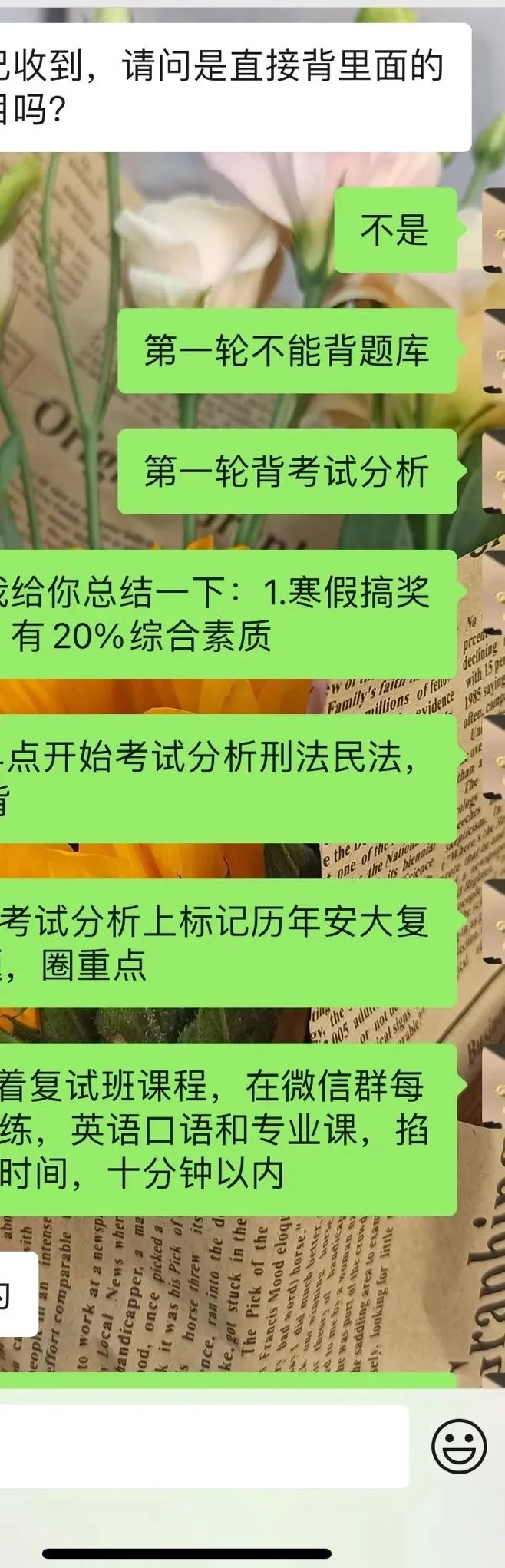 注:搭配本平台磬苑法硕-【非法学复试班】学习效果可能更好喔!第一轮是背,考生为主导;第二轮是练,微信群考生和平台主导;第三轮仿真模拟面试。真题资料用于三轮复习,复试班内容侧重第二三轮学习。