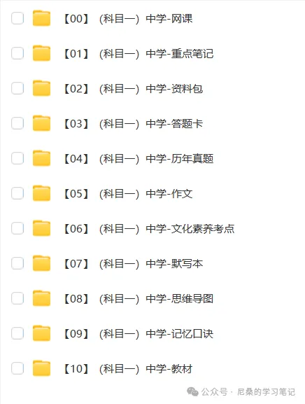 科目一全部备考资料,学长已经整理完毕,全部打包在下方文件夹(有需要的同学,可以找学长获取)【科目一全套资料包】