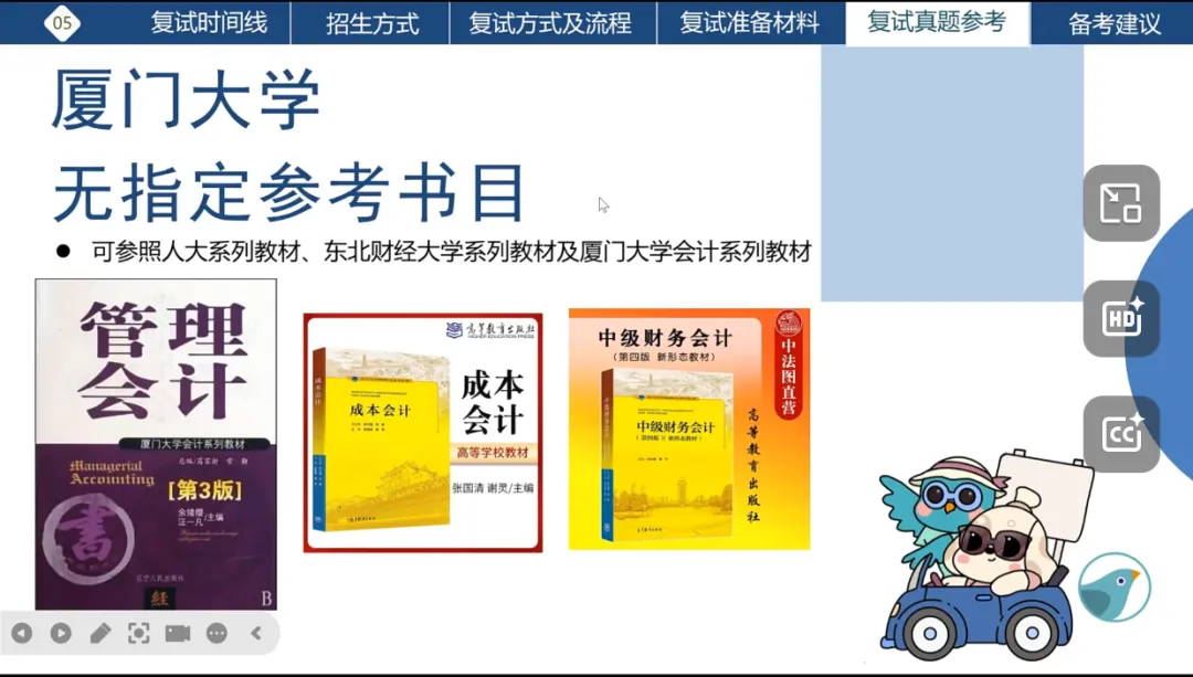 由于厦门大学指定参考书目,以下是直系学姐推荐使用书籍。