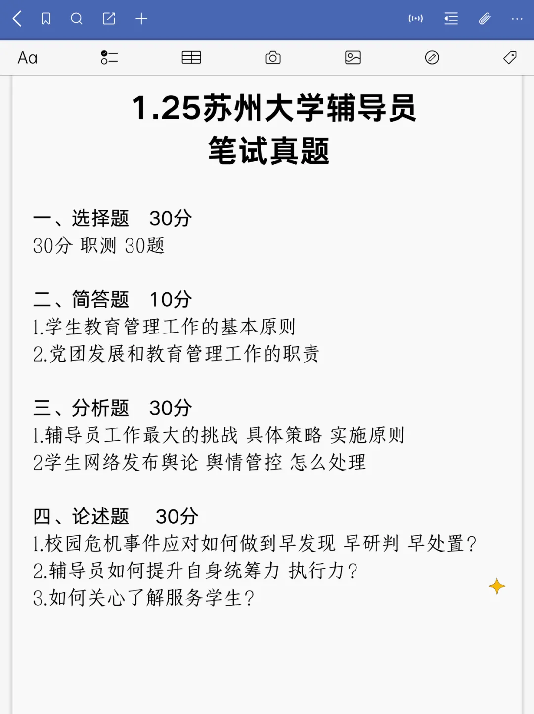 >【真题分享】1.25苏州大学辅导员笔试真题