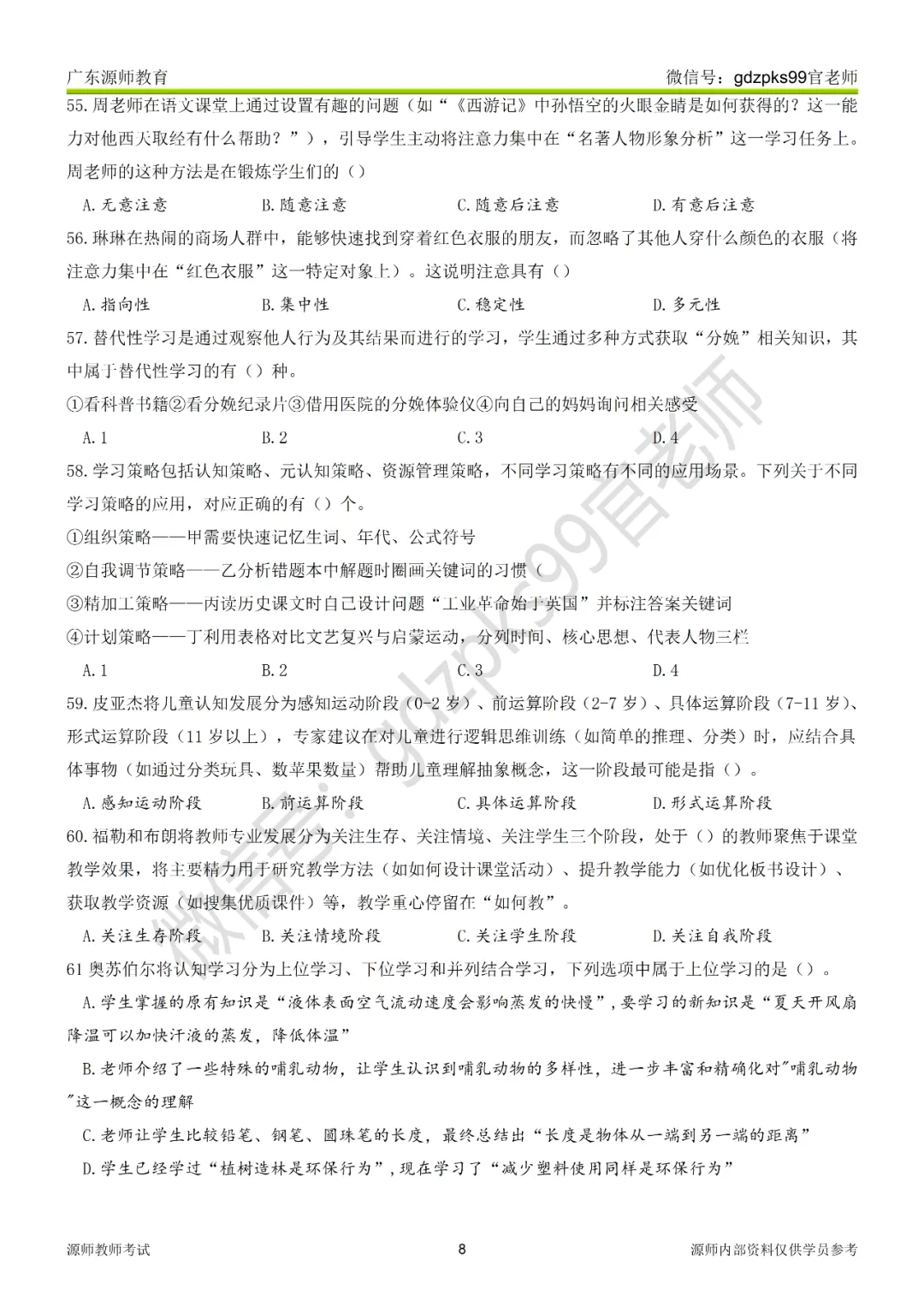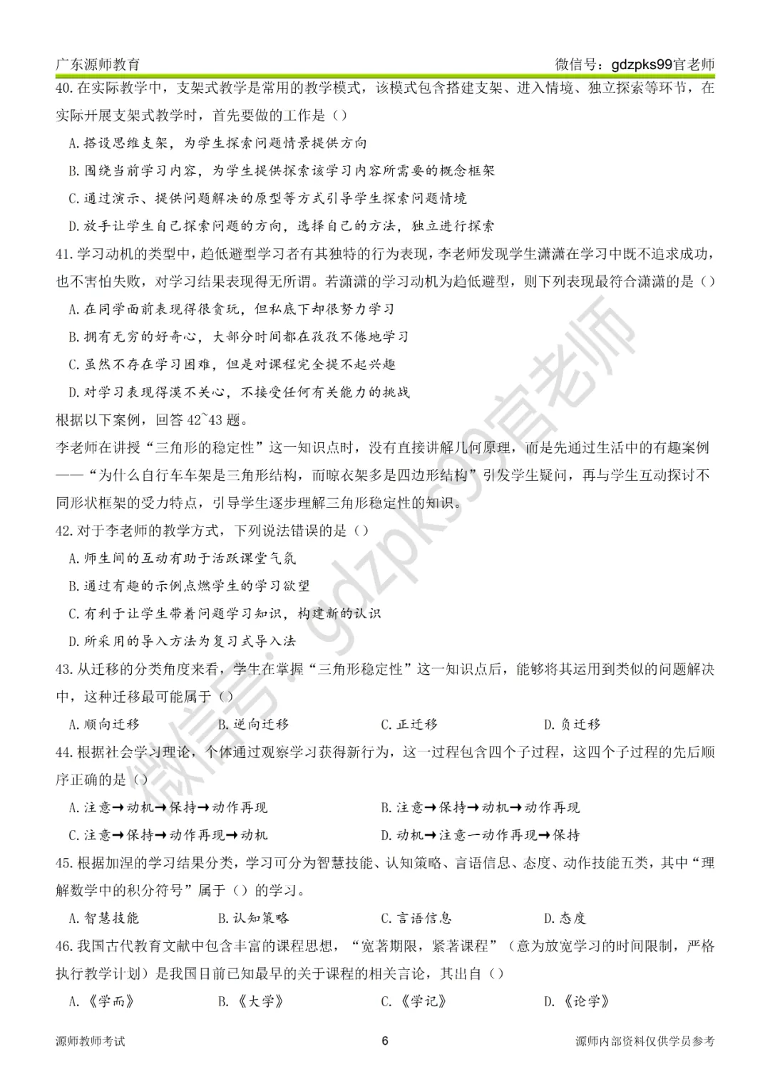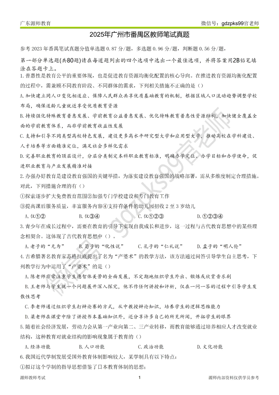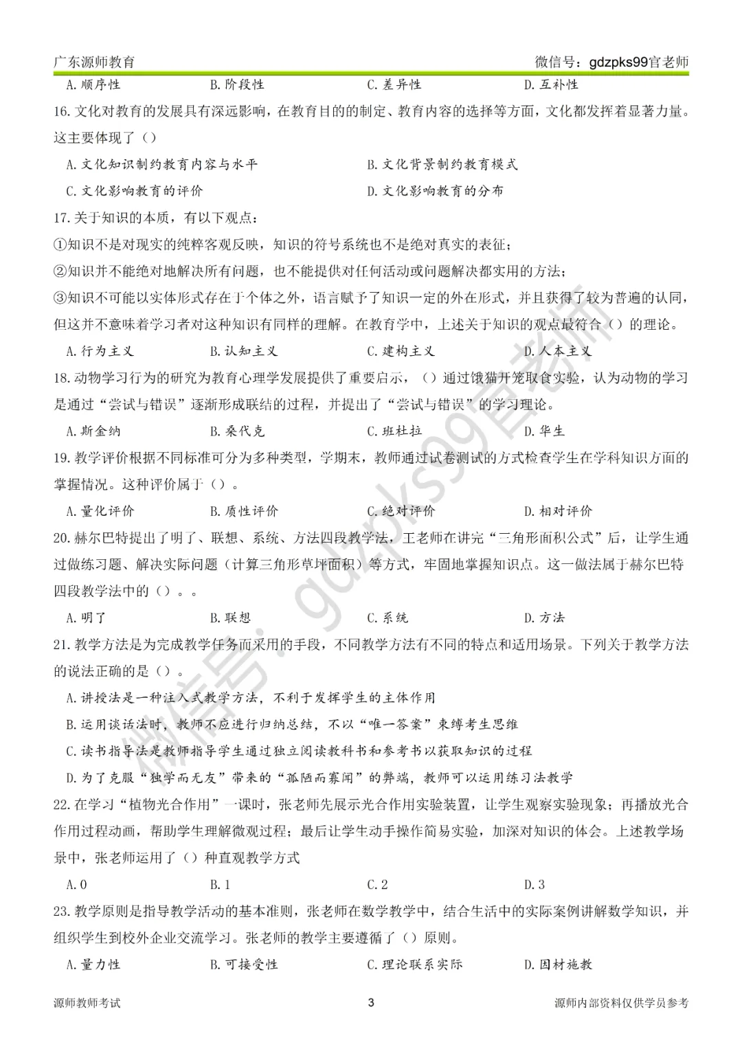 4.古希腊著名教育家苏格拉底提出了名为“产婆术”的教学方法,该方法通过问答引导学生自主思考,下列教学行为中运用了“产婆术”的是()