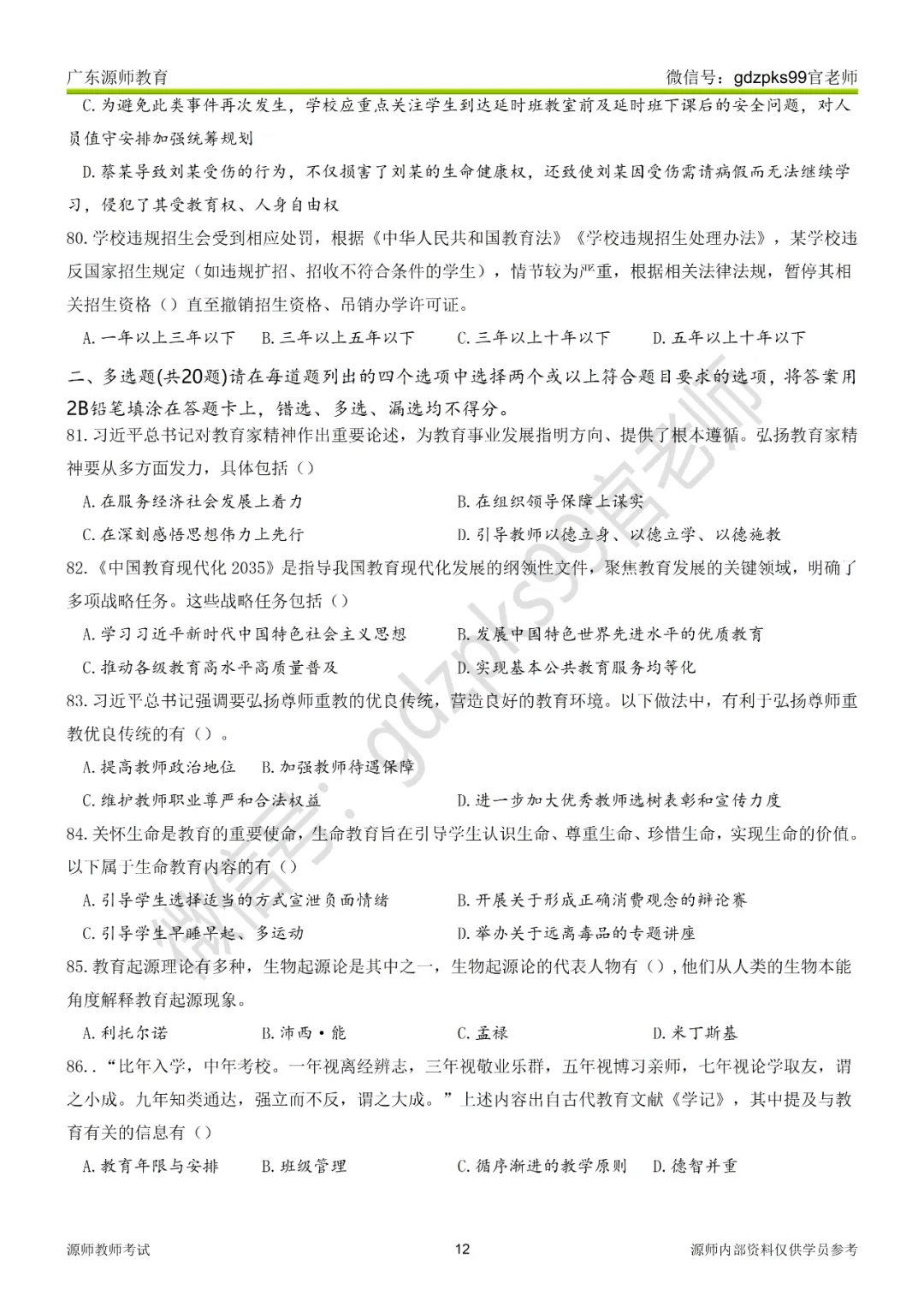 第一部分单选题(共80题)请在每道题列出的四个选项中选出一个最佳选项,并将答案用2B铅笔填涂在答题卡上。