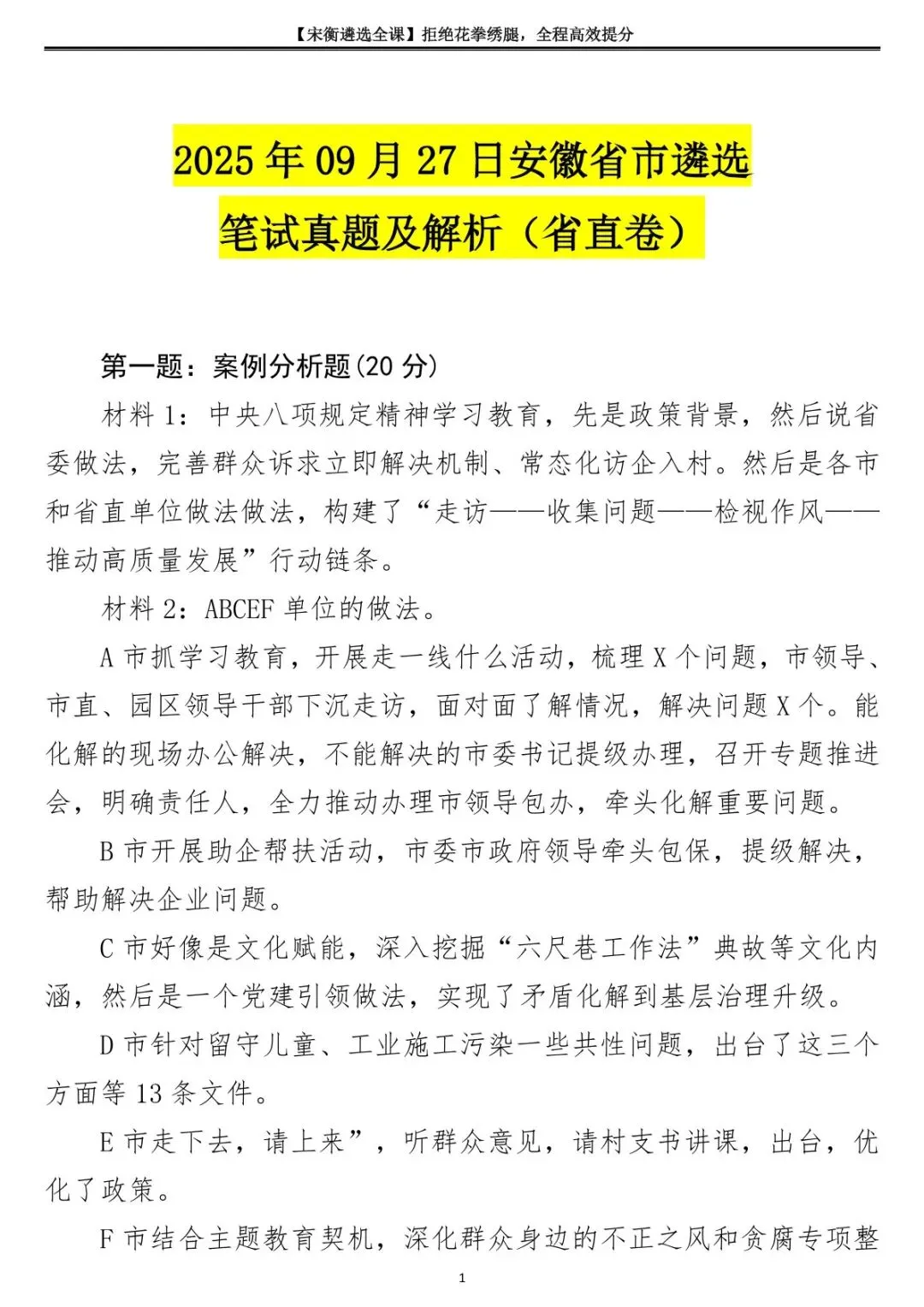 >2025年09月27日安徽省市遴选笔试真题及解析(省直卷)