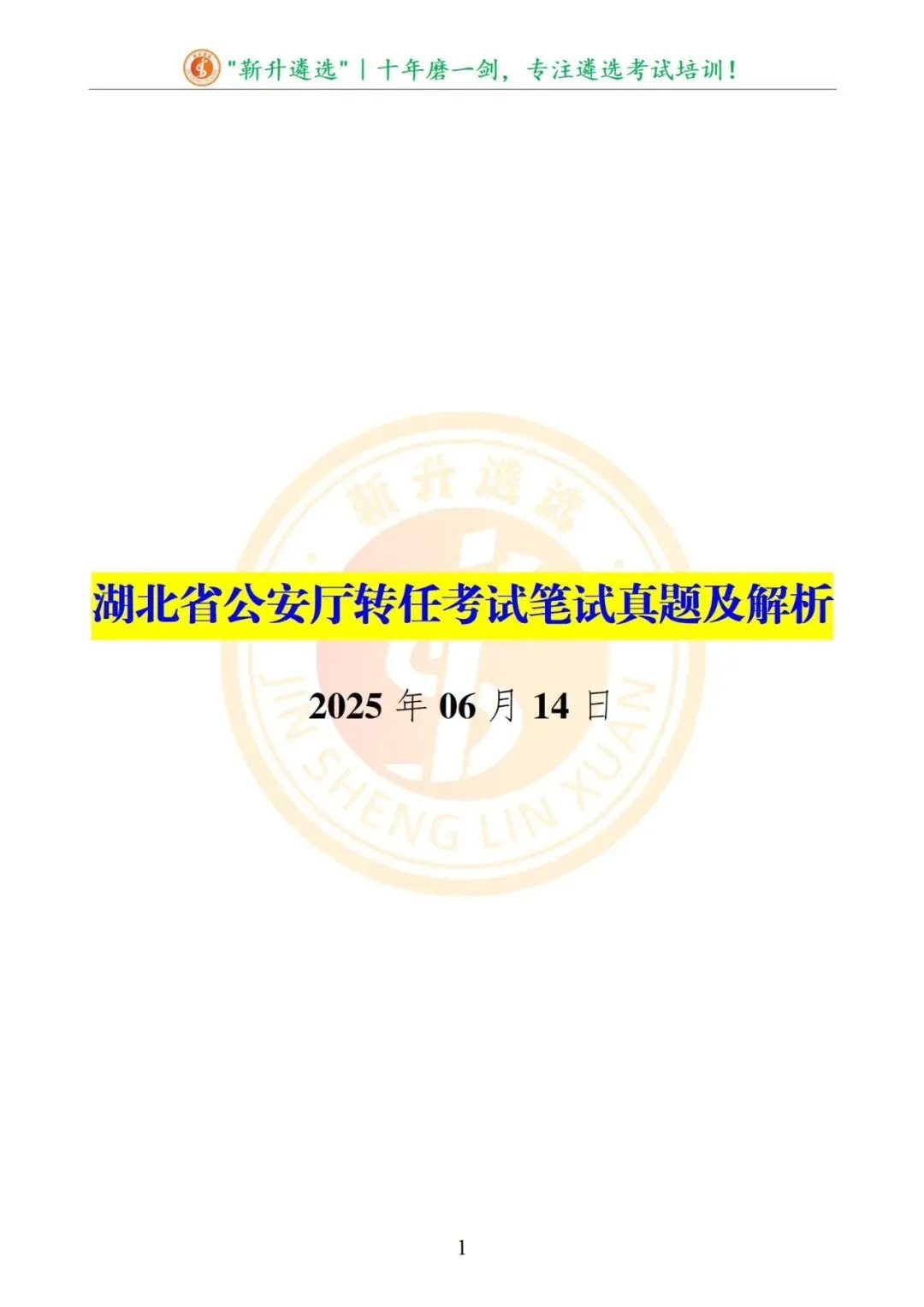 真题分享|2025年06月14日|湖北省公安厅转任考试笔试真题及解析