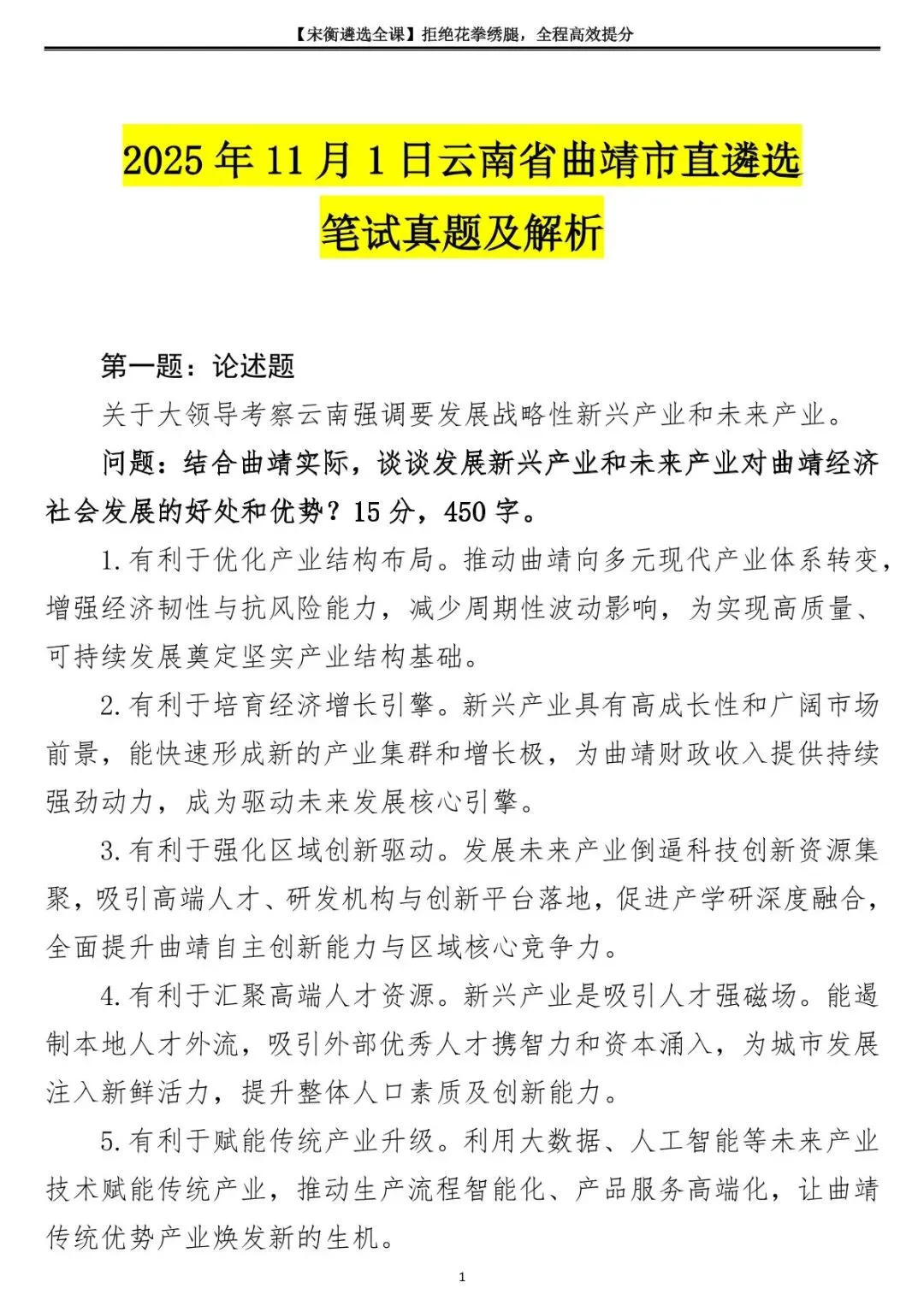 >2025年11月1日云南省曲靖市直遴选笔试真题及解析