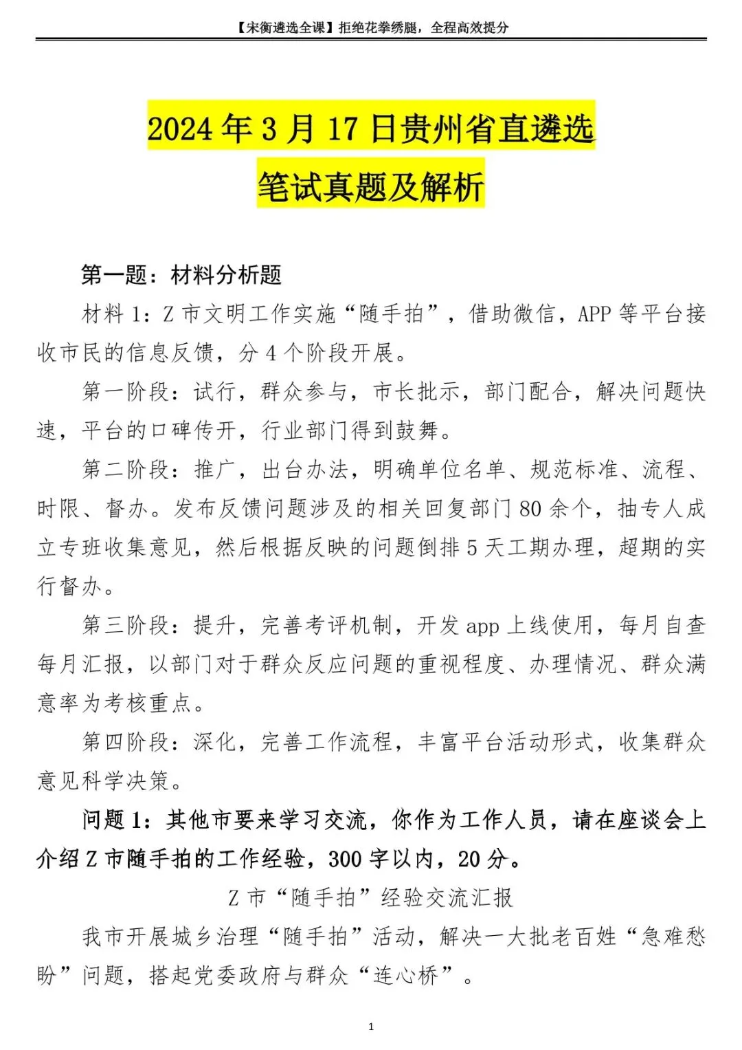 2024年3月17日贵州省直遴选笔试真题及解析