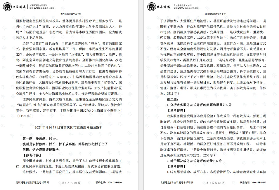 精心整理44套省市遴选考题及解析,覆盖2013-2024年省直、酒泉、庆阳、武威等多地真题(25年可本公众号合集中查询),紧扣甘肃“新春第一会”、省委一号文件、新质生产力发展等热点,匹配考纲直击命题核心,打造针对性备考资料!