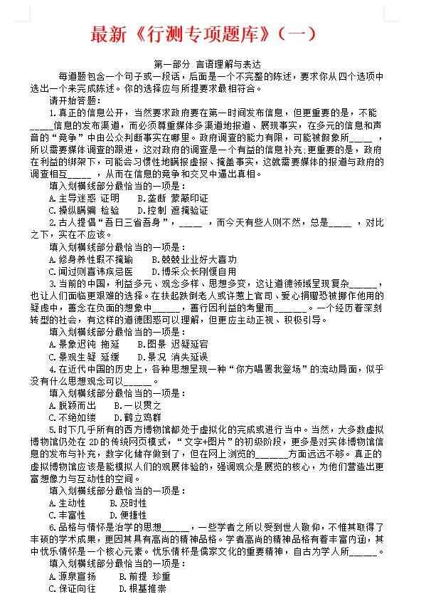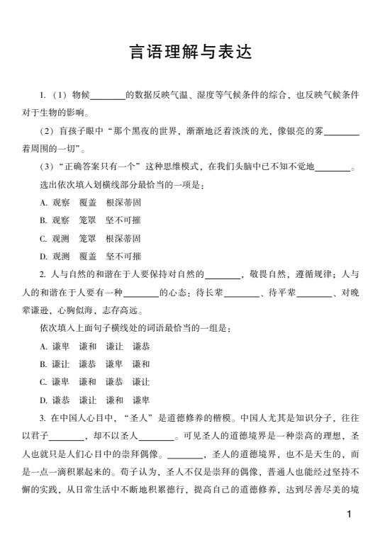 言语理解与表达:约 15-20 题,核心考点为选词填空、片段阅读、语句表达,材料多贴合国企工作、电力行业相关内容,侧重快速提炼主旨、辨析词语语境与语句逻辑的能力。