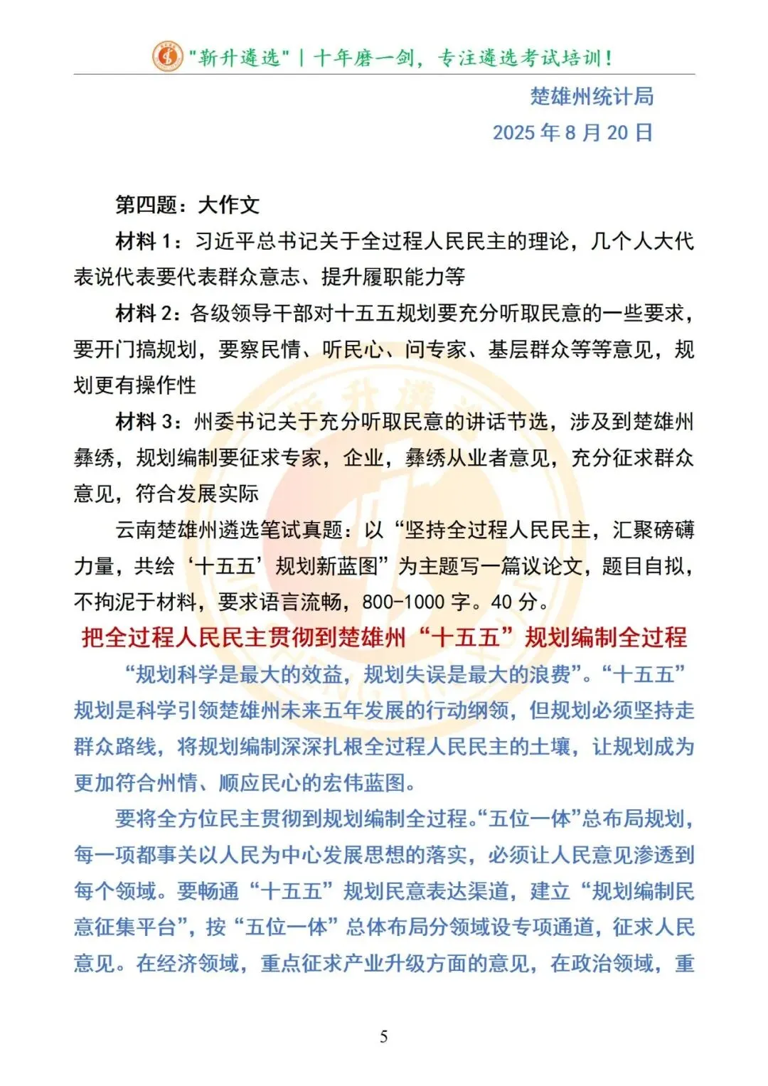 真题分享|2025年08月30日|云南省楚雄州直遴选笔试真题及解析(政务卷)