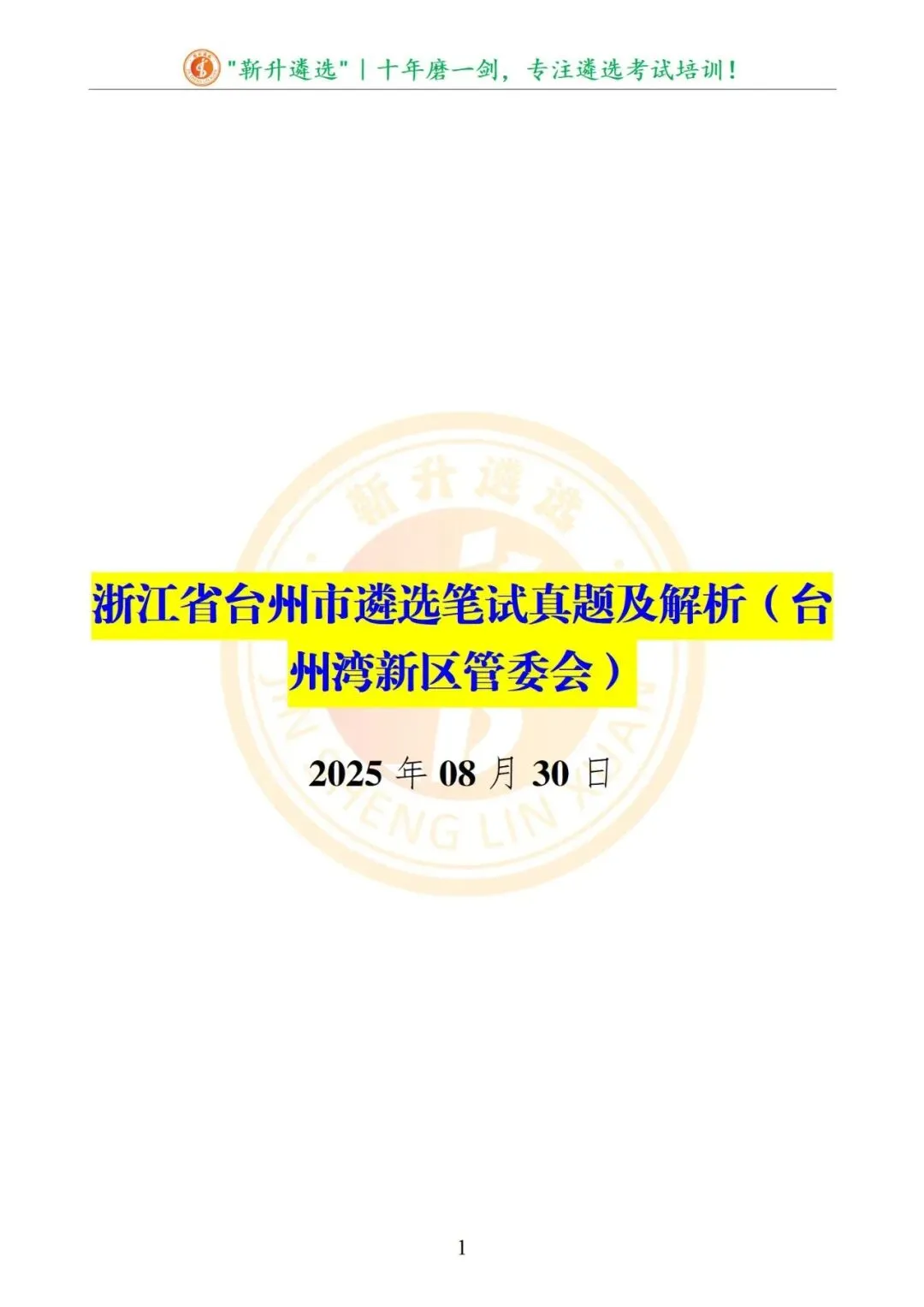 >真题分享|2025年08月30日|浙江省台州市遴选笔试真题及解析(台州湾新区管委会)