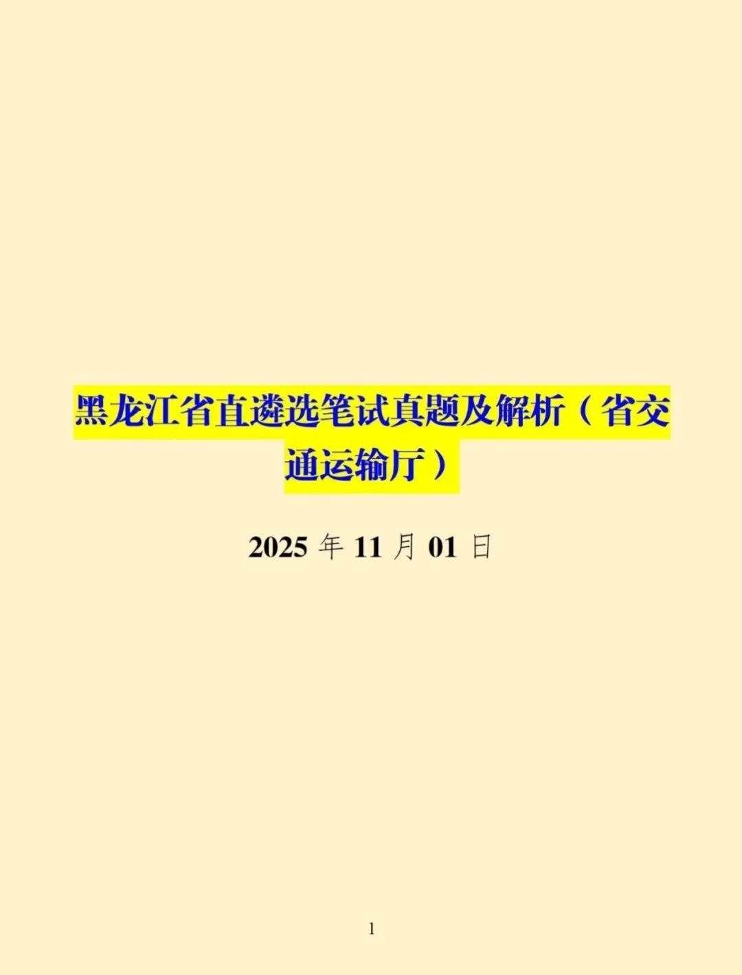 >黑龙江省直遴选笔试真题及解析(省交通厅)2025年11月1日