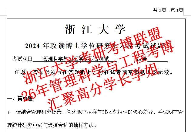 1.2024年浙江大学管理学院管理科学与工程学科综合考博笔试真题回忆(收集到4个简答题,2个计算论述题)
