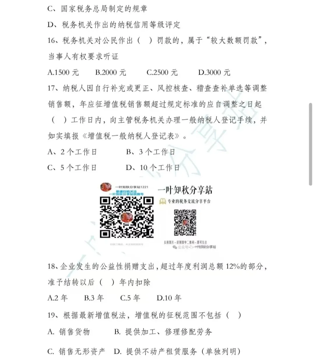 需要电子版和答案的朋友请关注本公众号后回复 “答案 ”二字。