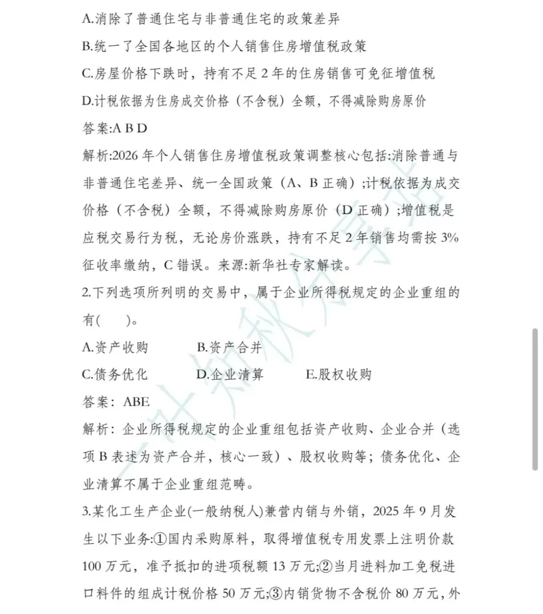 3.张某于2025年3月购买了10万元的某理财产品,后因急需用钱,于2025年12月31日转让50%的理财产品,转让收入15万元,张某12月份转让理财产品应缴纳增值税()万元。