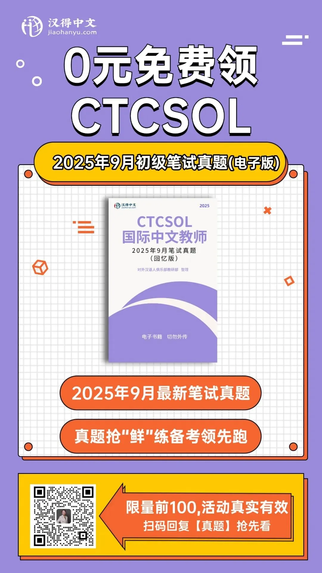 免费领取新版CTCSOL国际中文教师证书笔试(初级)真题~