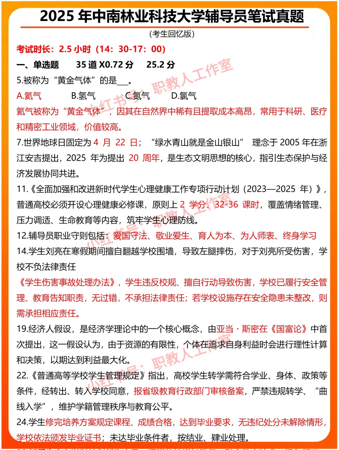 >2025年中南林业科技大学辅导员招聘笔试真题