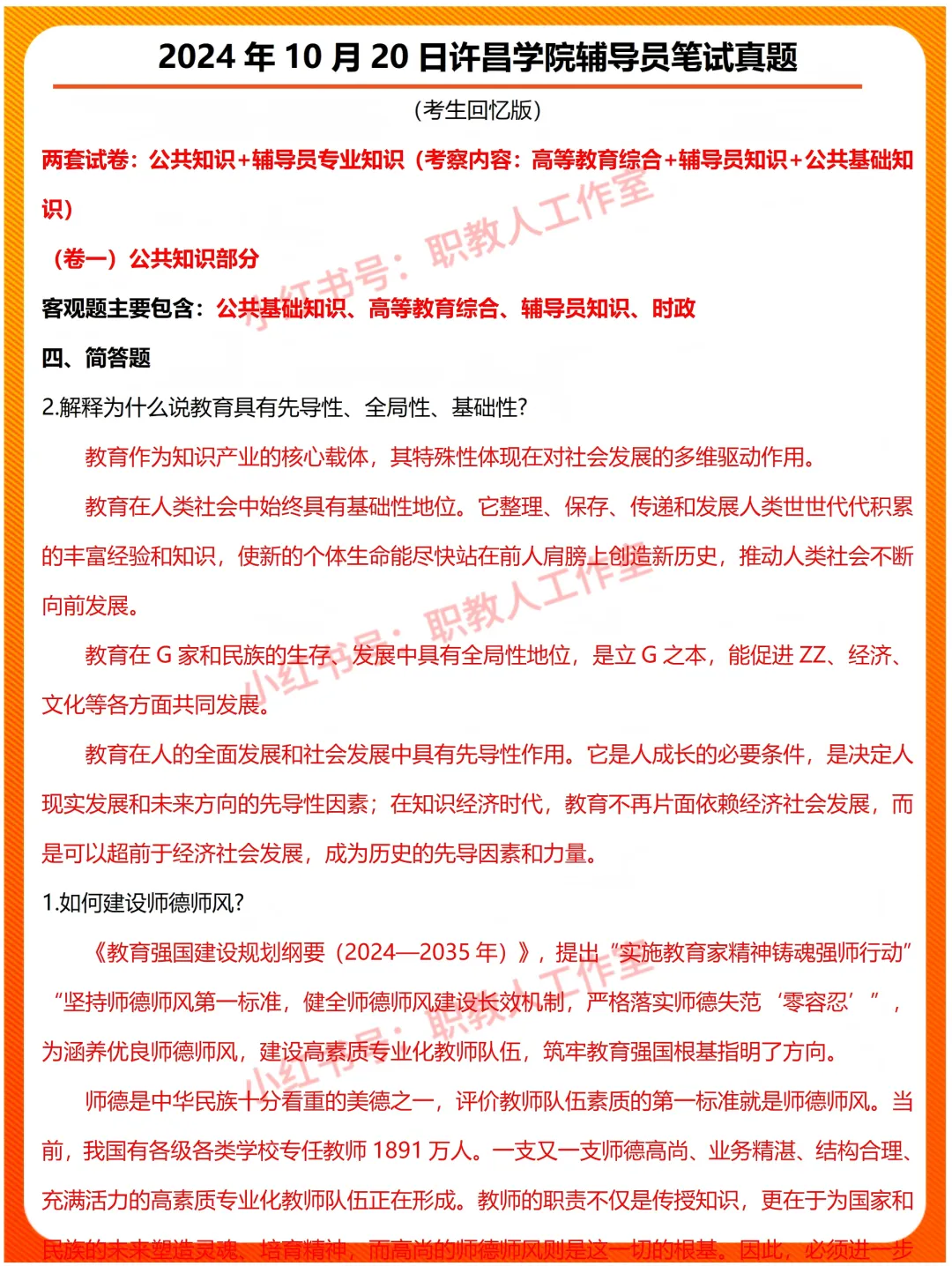 >2024年10月20日许昌学院辅导员招聘笔试真题