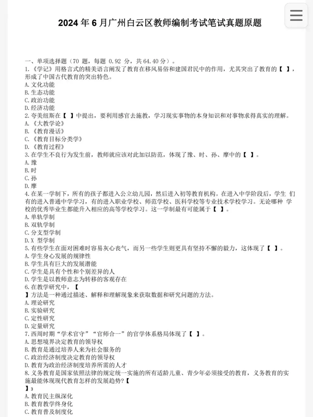 2. 广东教育理论知识真题