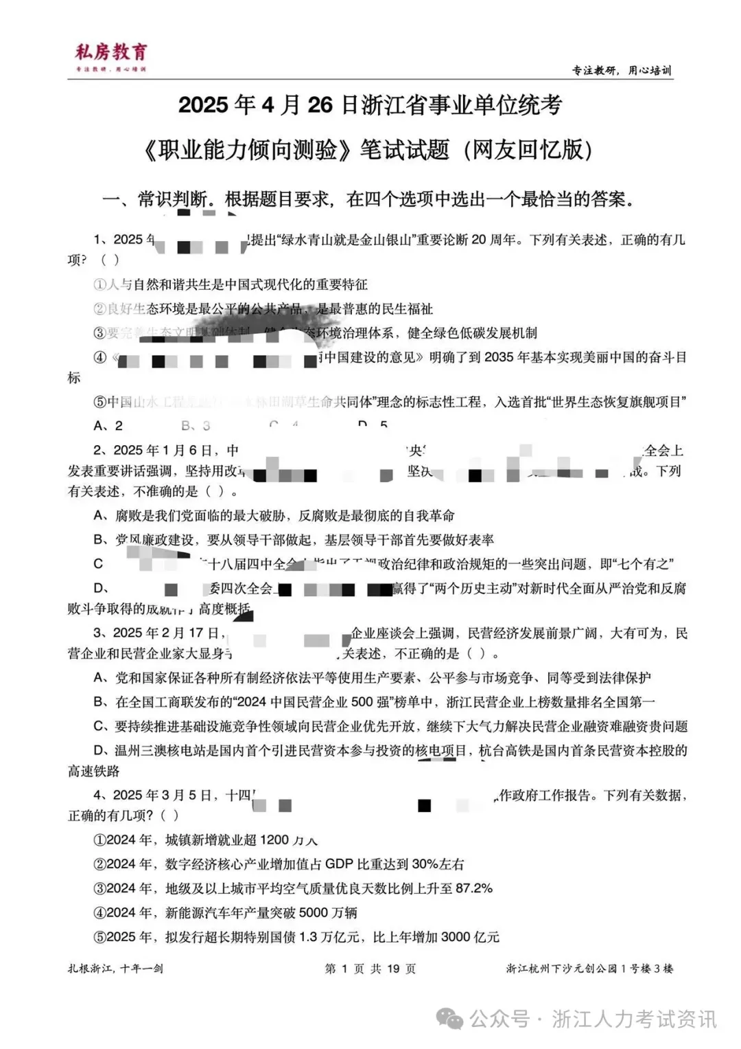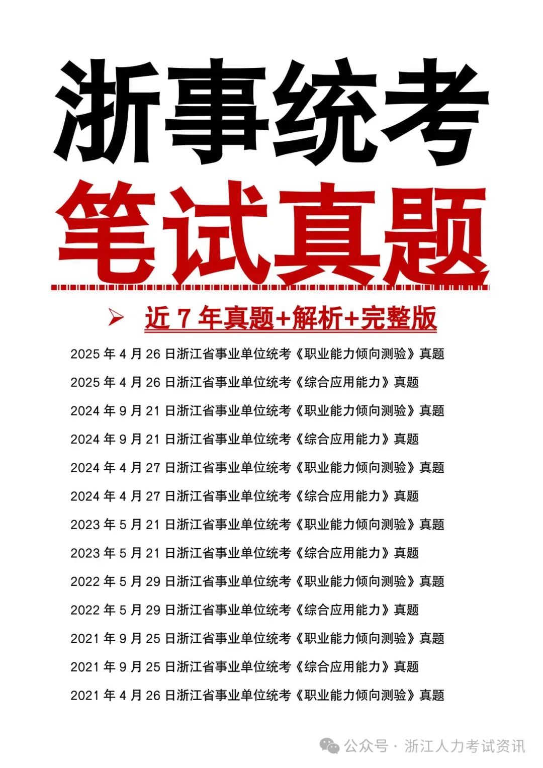 1、近7年浙江省事业单位统考笔试真题+解析