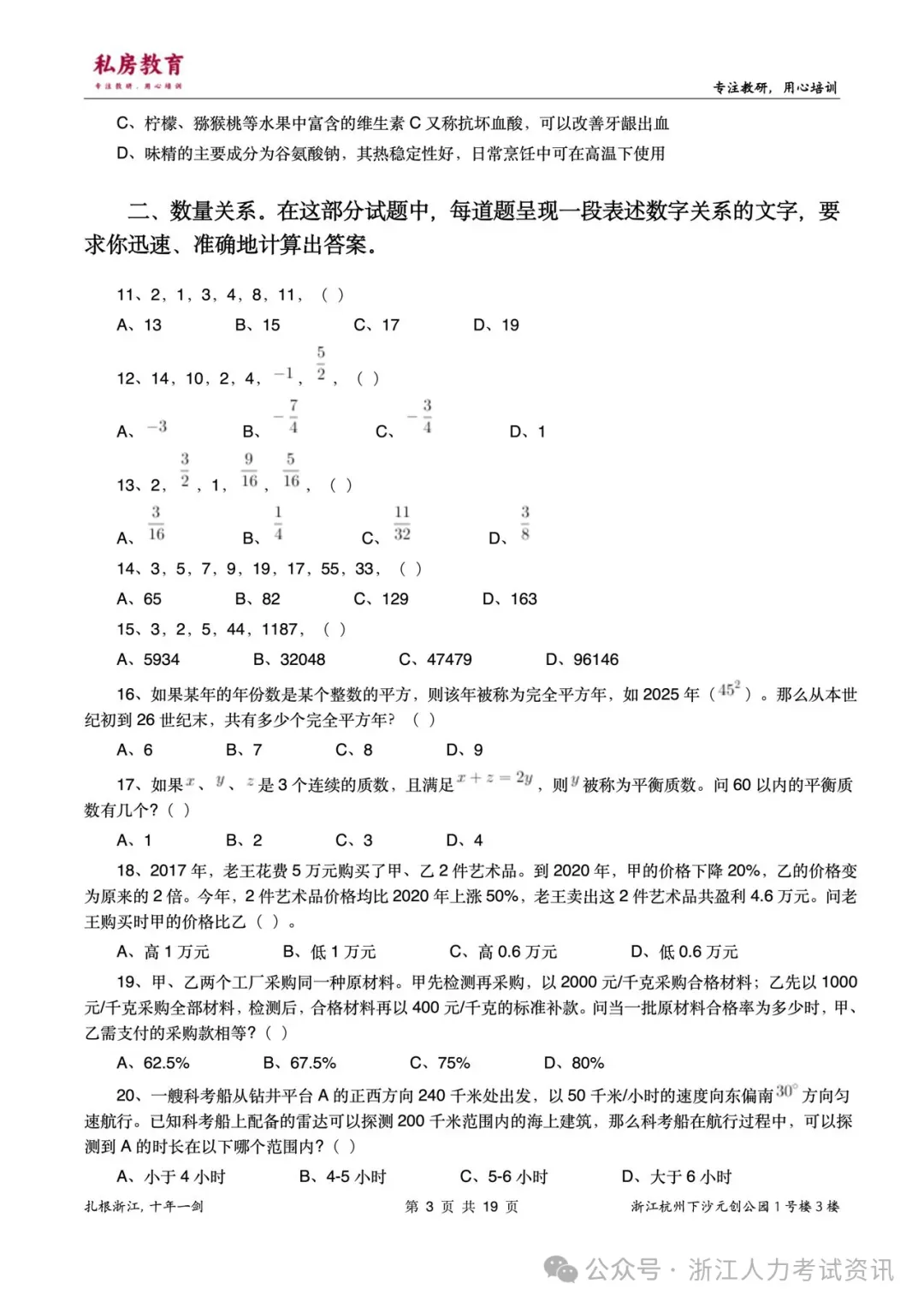 3.近5年浙江事业单位统考笔试真题