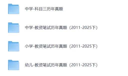 已收集整理小学、中学、幼儿园教师资格证考试2011年-2025年的历年考试真题,欢迎有需要的朋友下载使用。幼儿-教资笔试历年真题(2011-2025下)夸克链接: