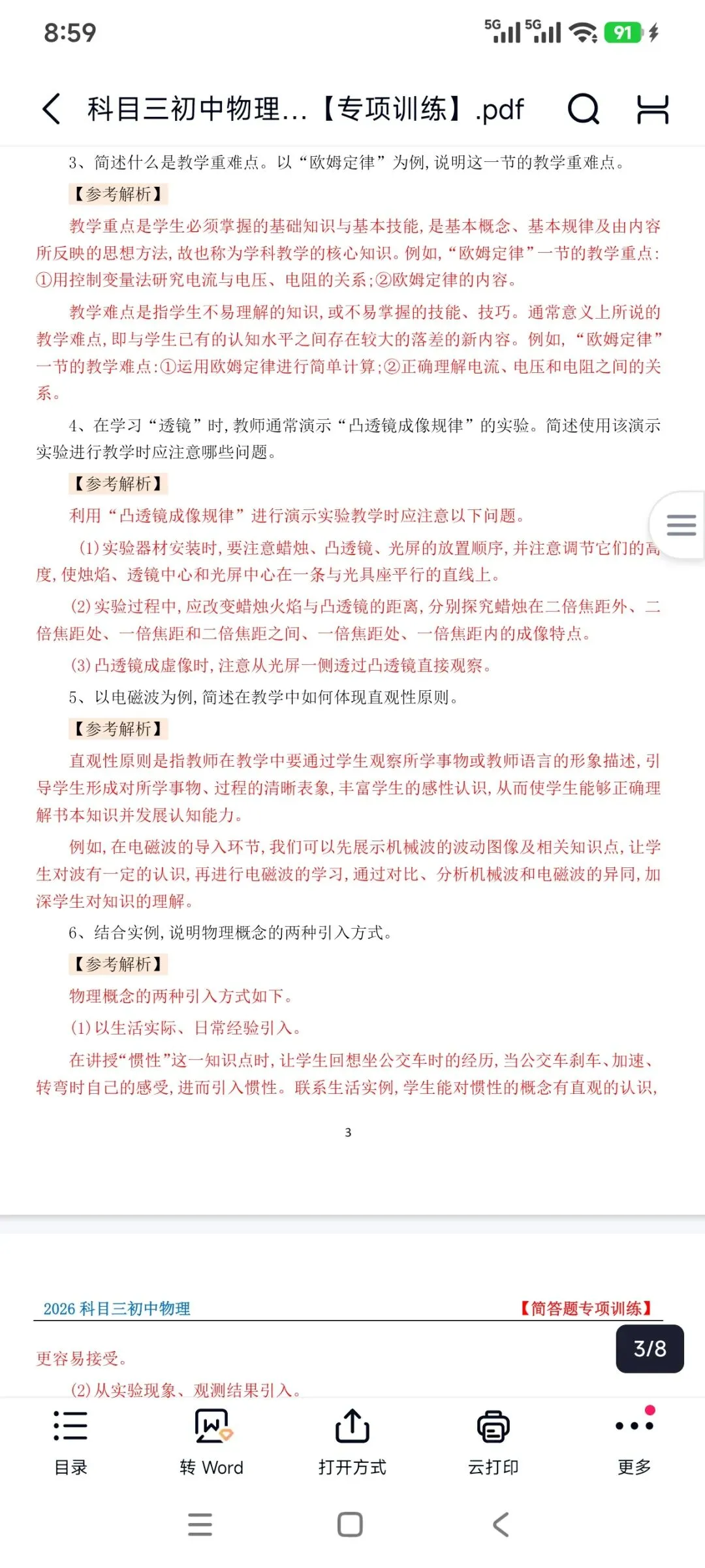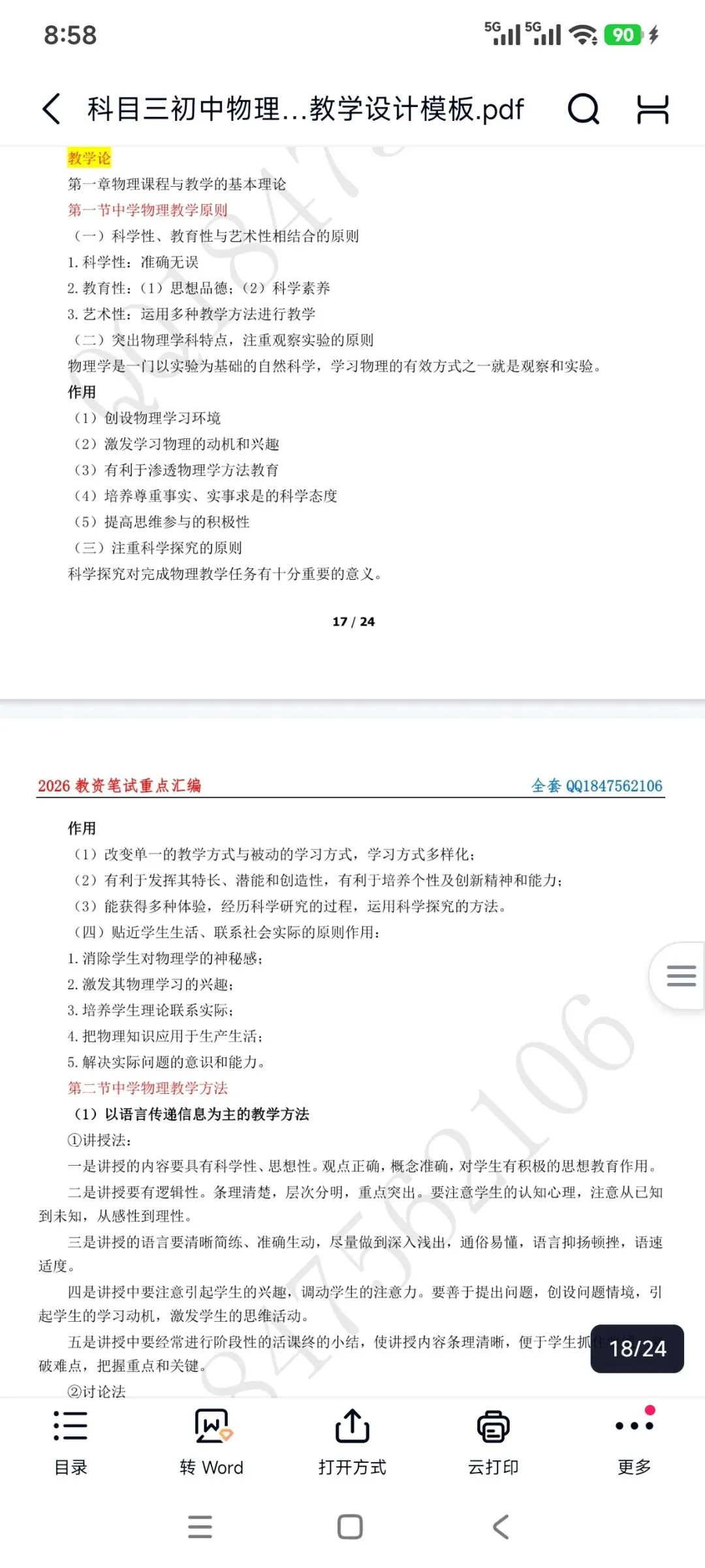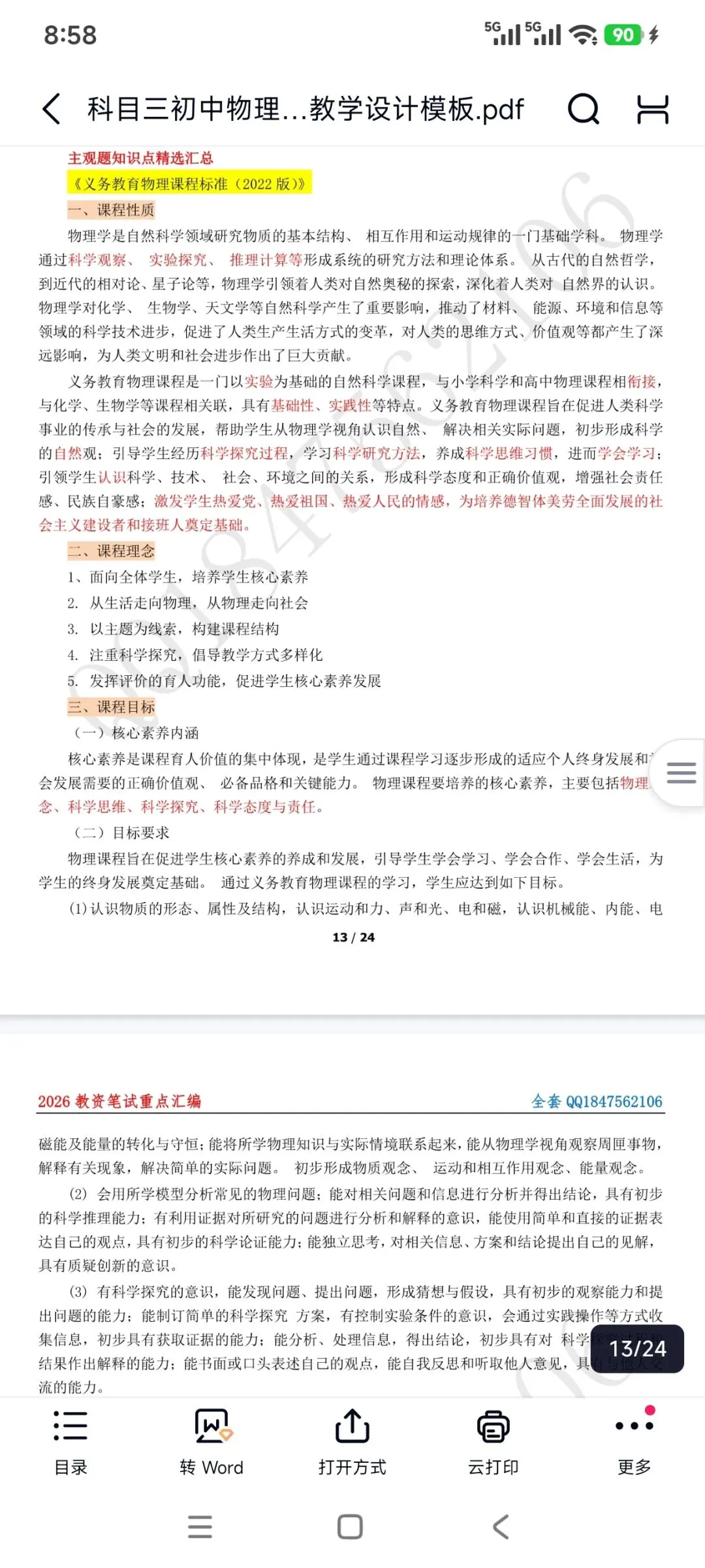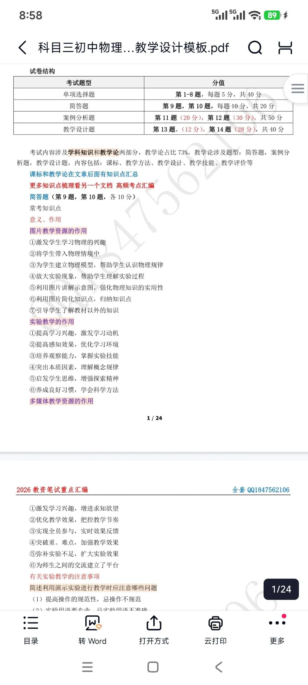 资料包括:教资笔试初中物理科目三高频考点重点笔记、教学设计答题模板、主观题专项训练,简答题背诵,历年真题、模拟卷和考前押题卷等