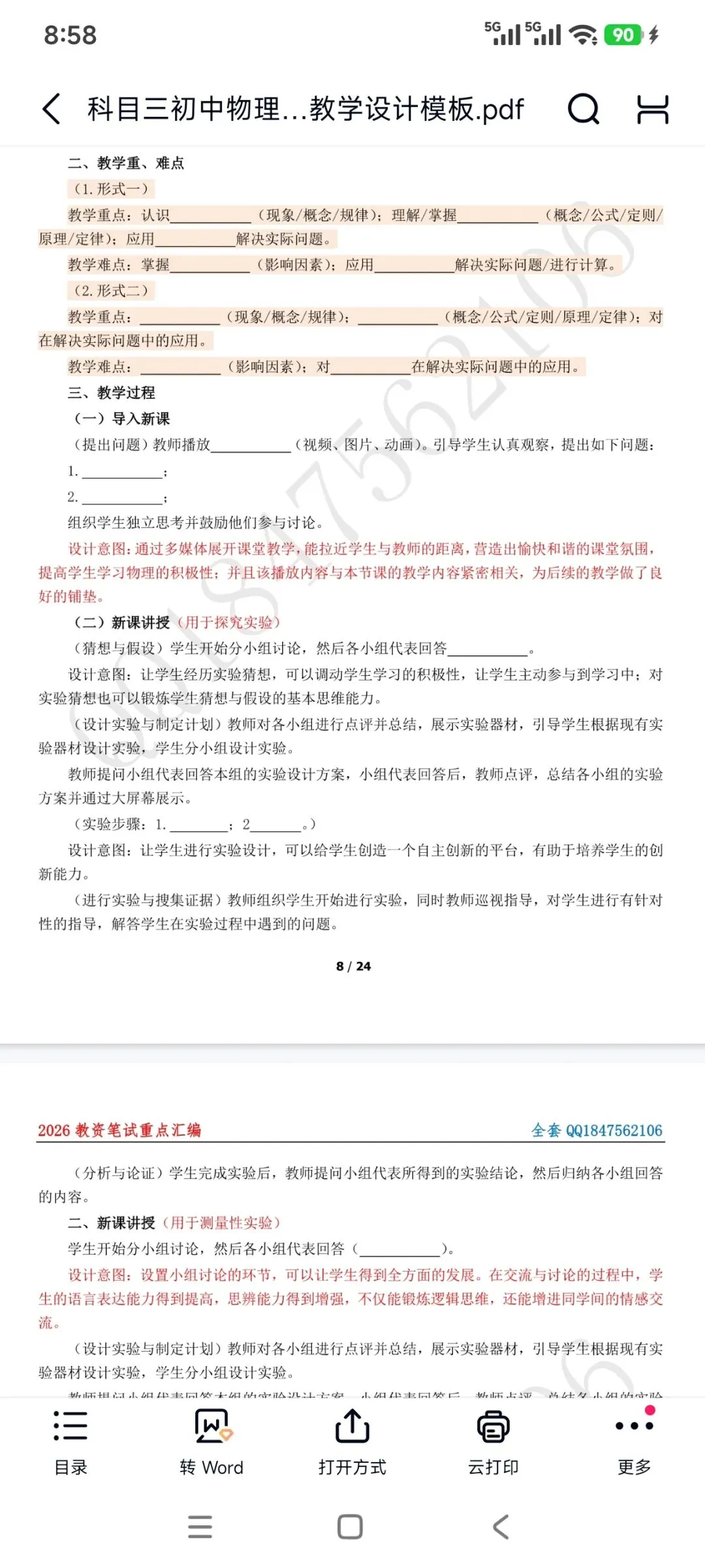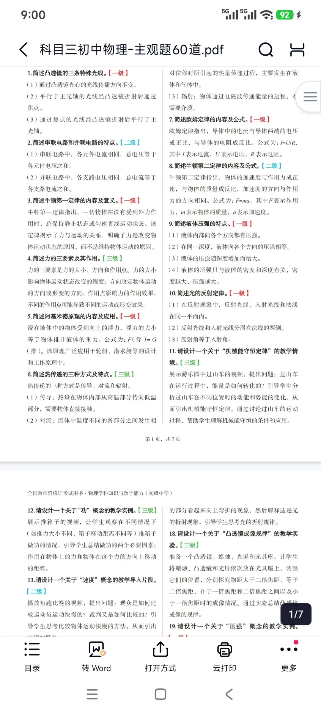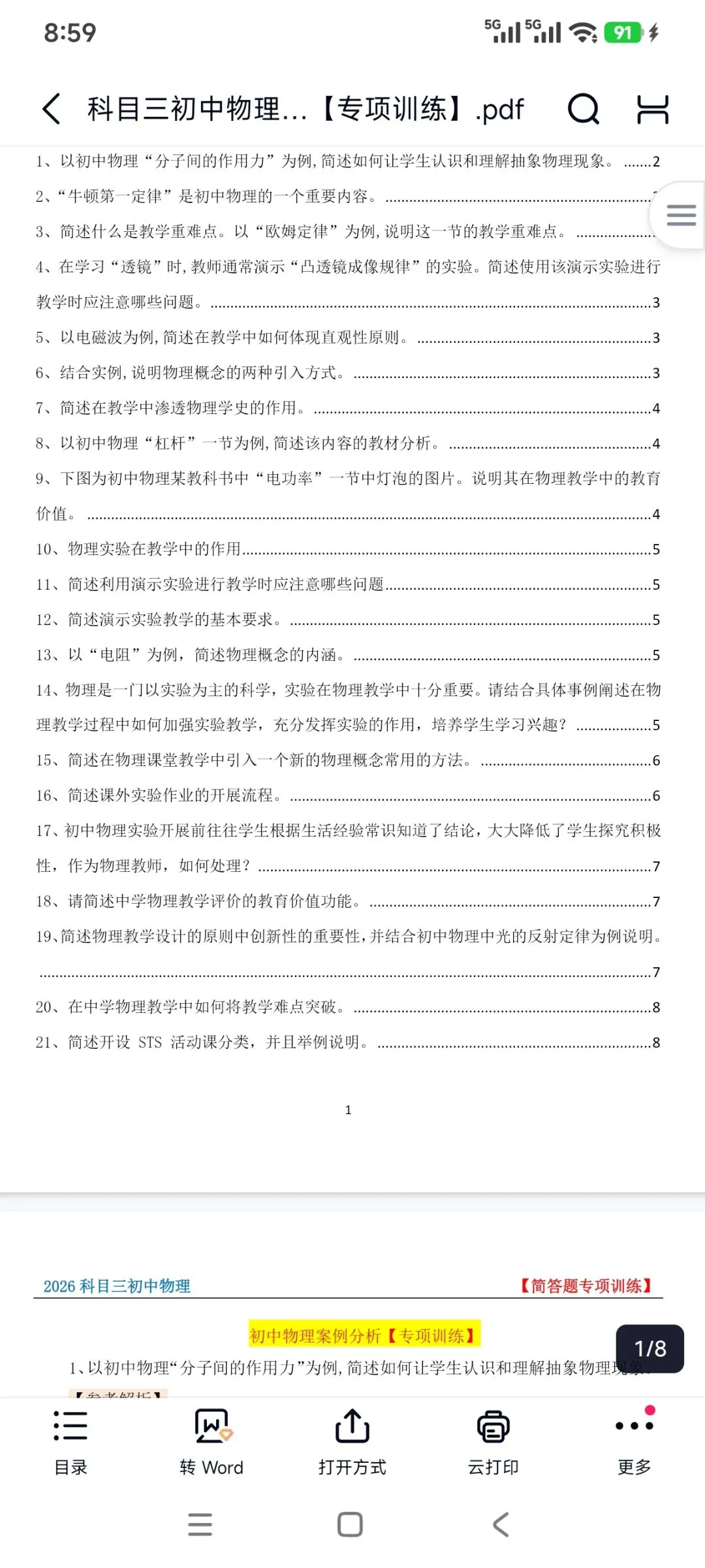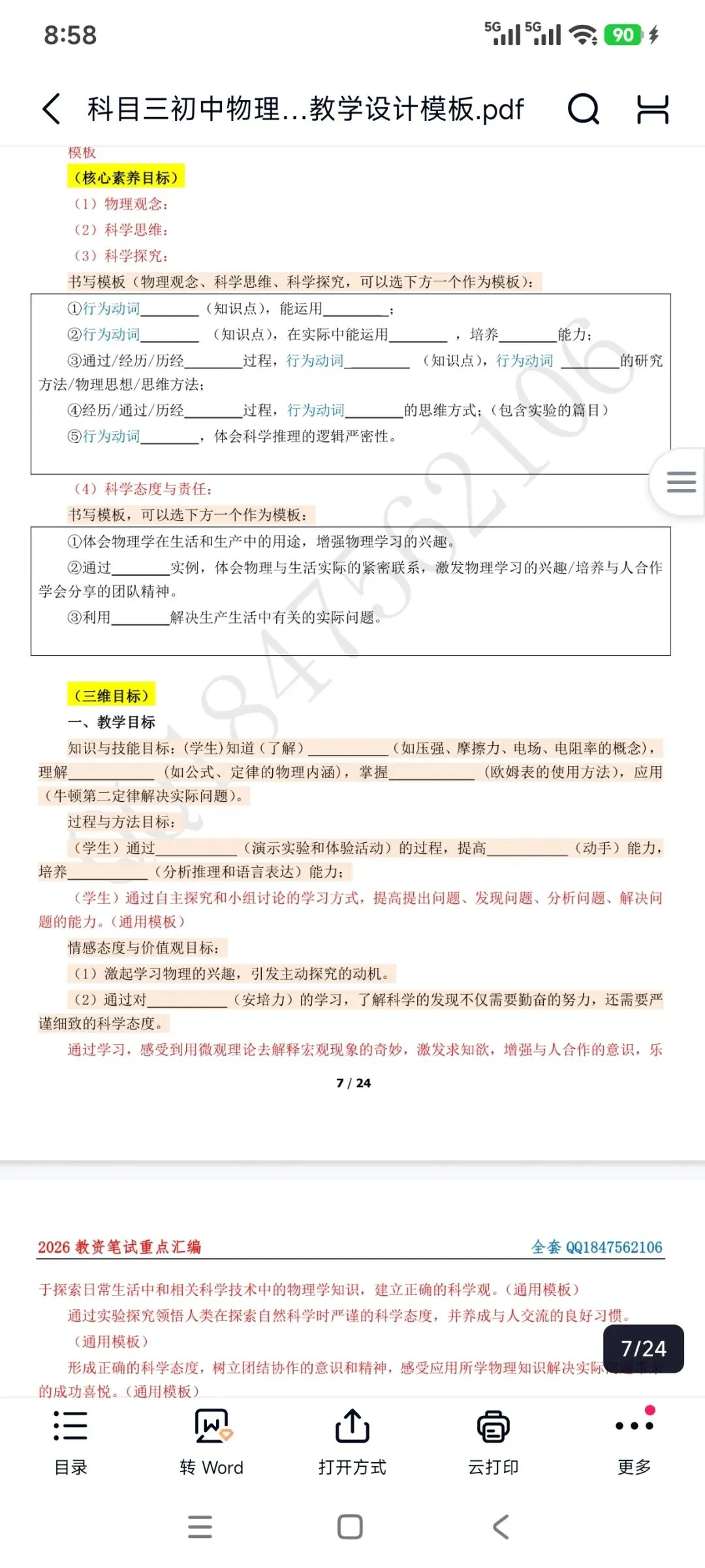 资料包括:教资笔试初中物理科目三高频考点重点笔记、教学设计答题模板、主观题专项训练,简答题背诵,历年真题、模拟卷和考前押题卷等