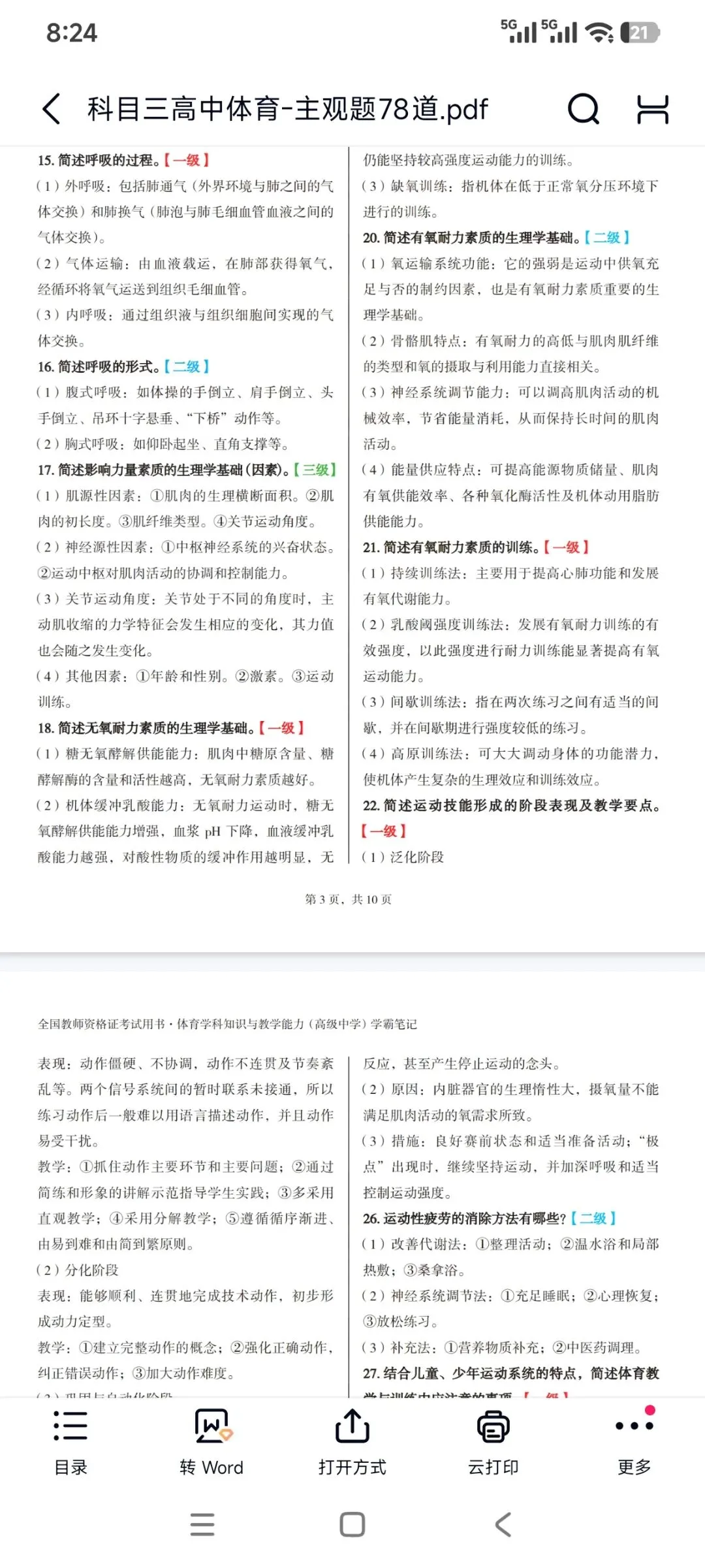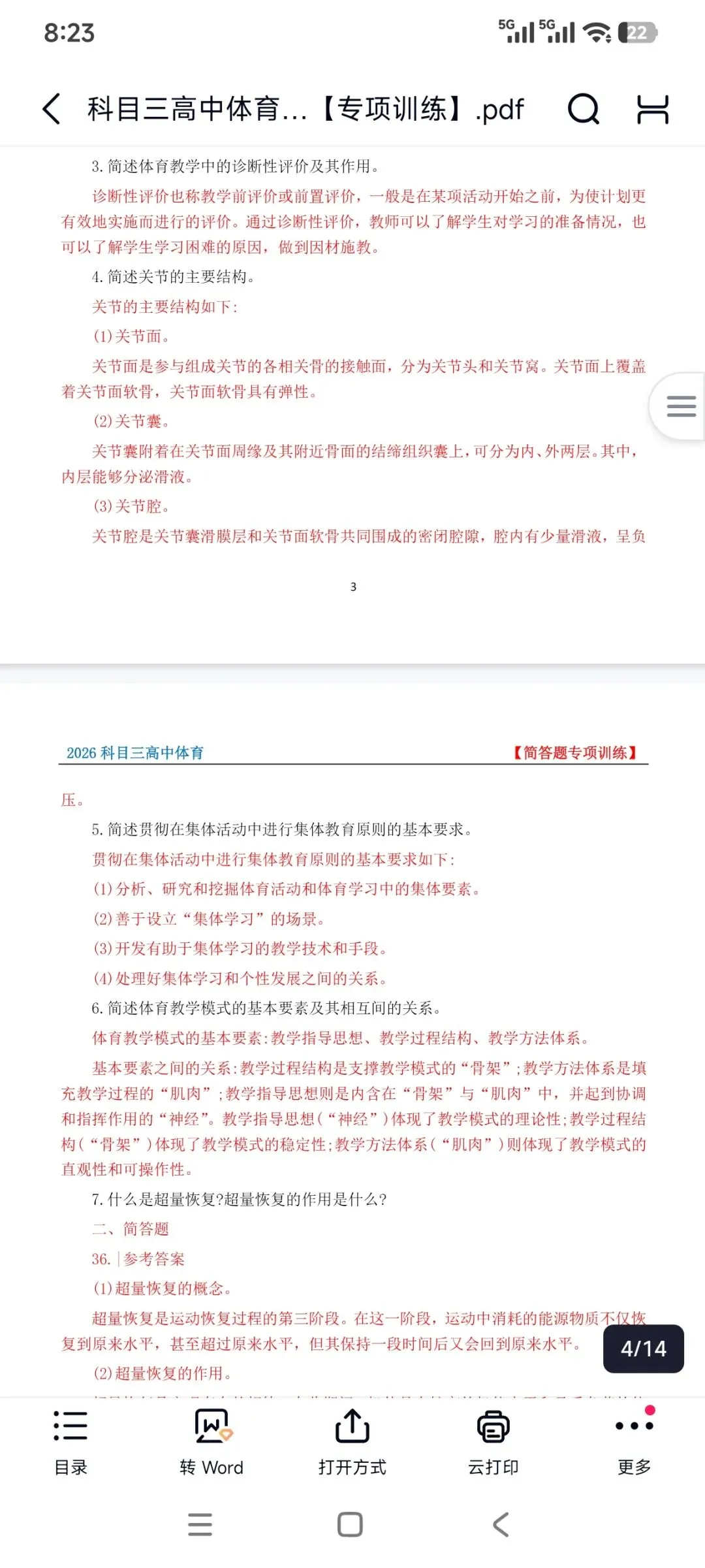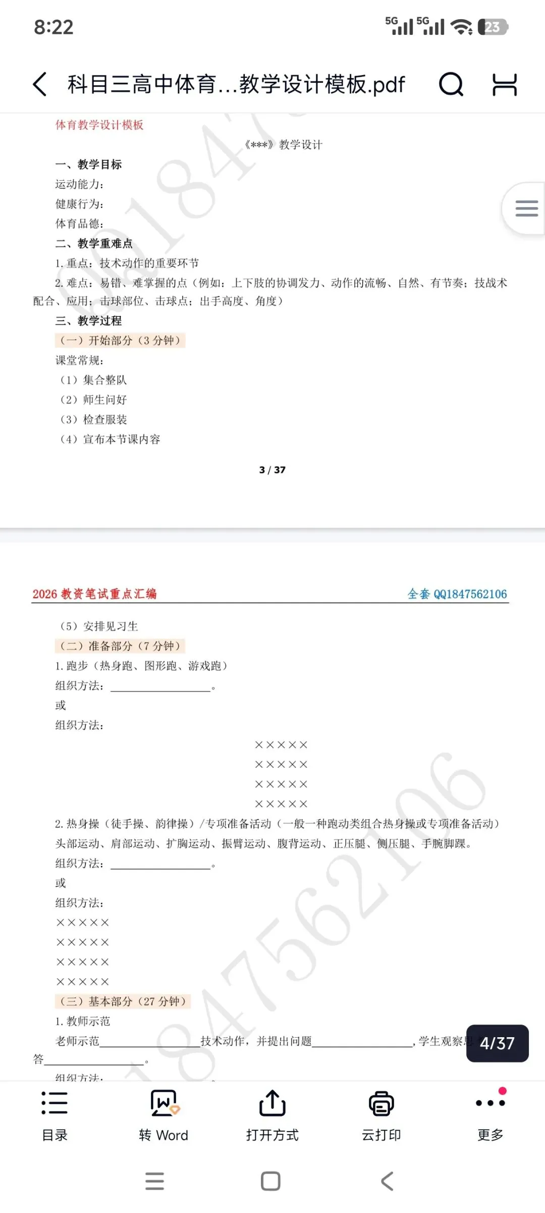 资料包括:教资笔试高中体育科目三高频考点重点笔记、案例分析答题模板、主观题专项训练,简答题背诵,历年真题、模拟卷和考前押题卷等