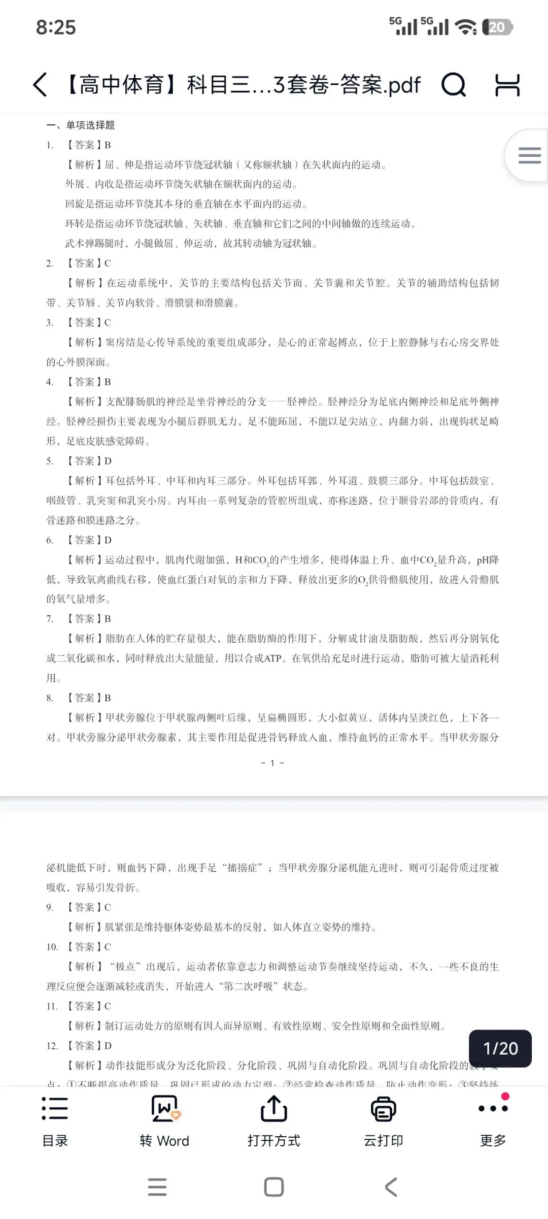 2020下高中体育历年真题试卷(精选)+解析.pdf