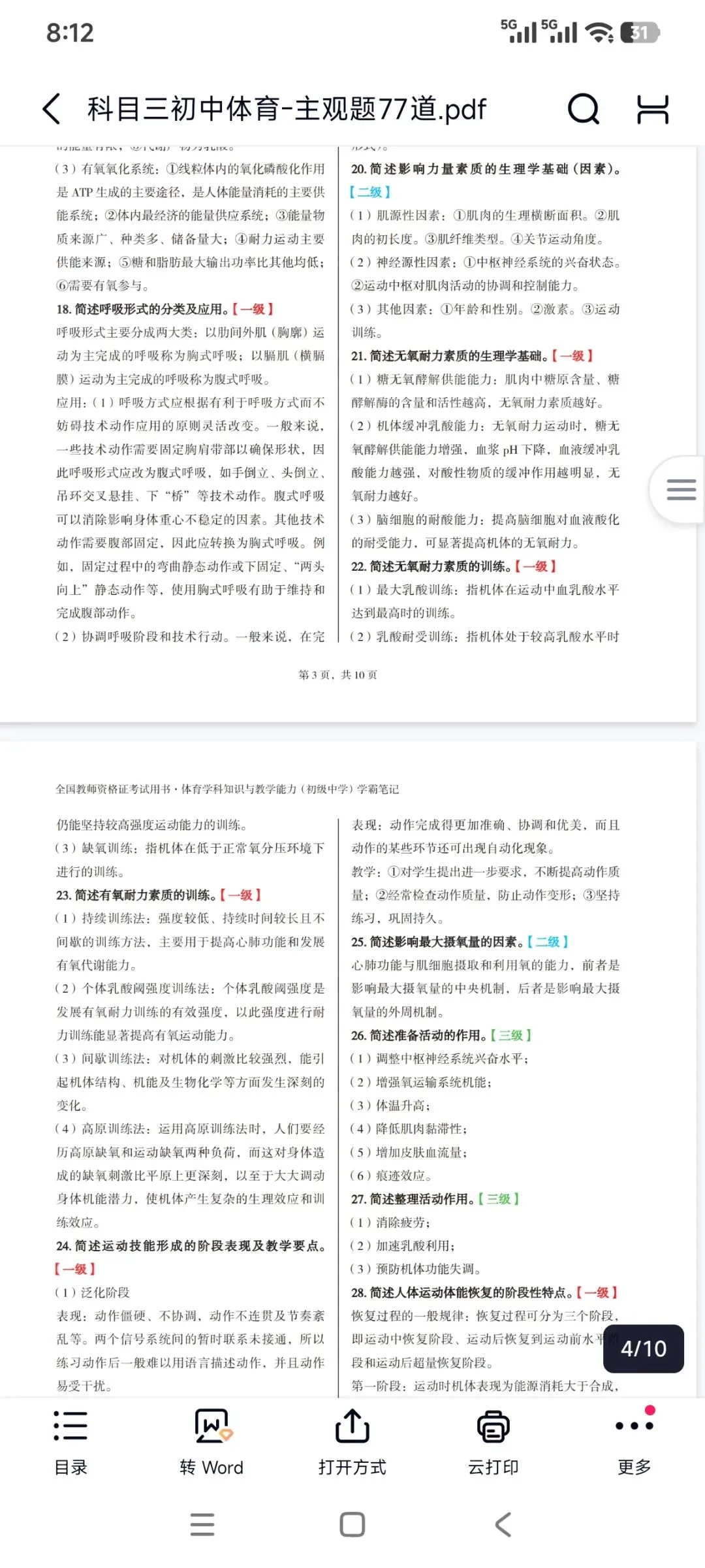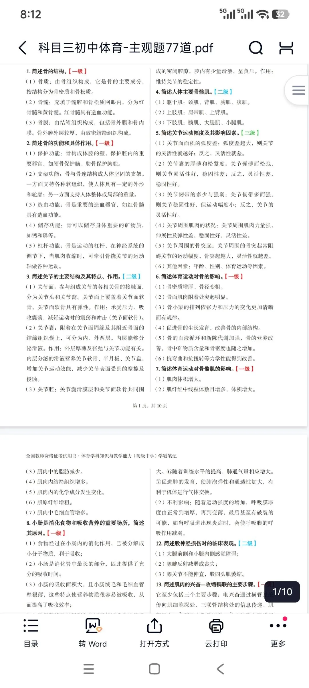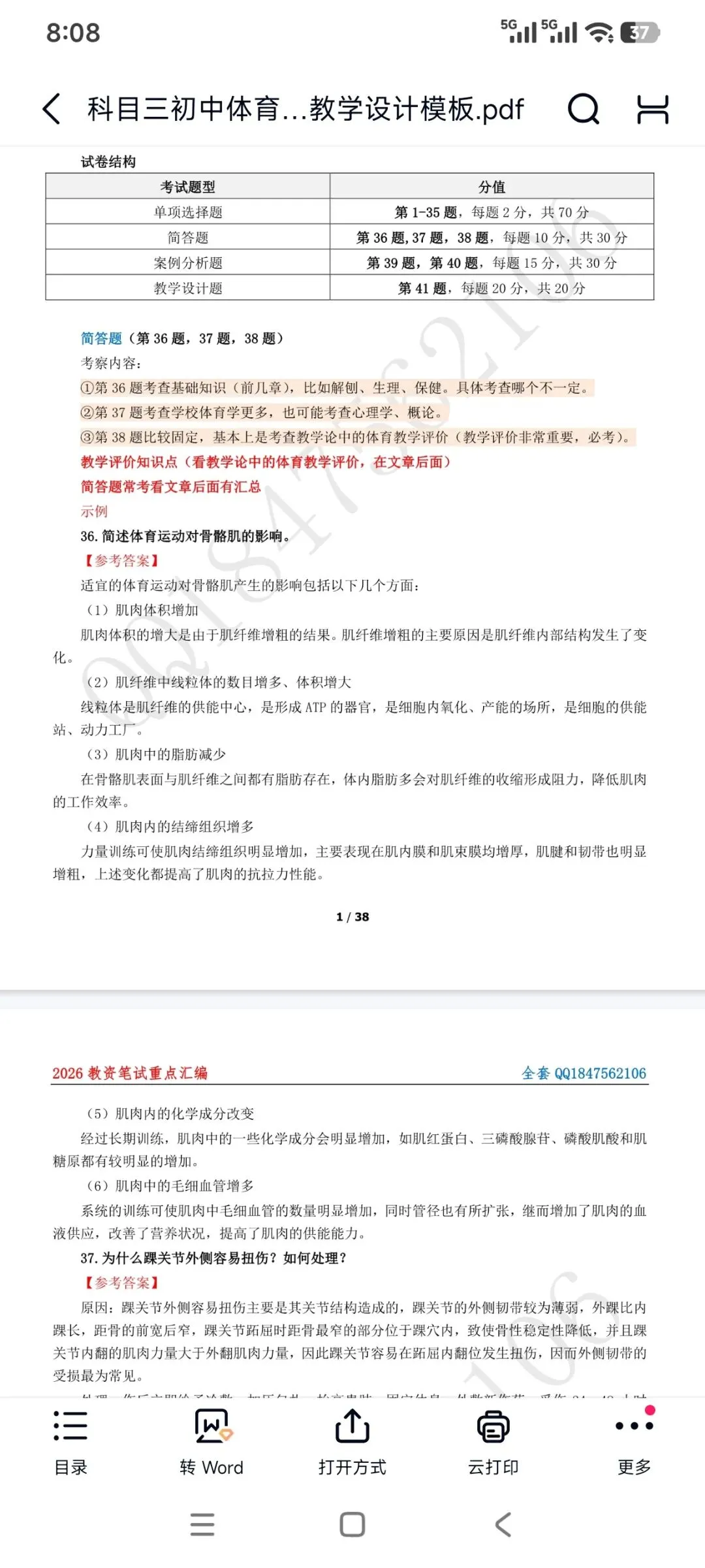 资料包括:教资笔试初中体育科目三高频考点重点笔记、案例分析答题模板、主观题专项训练,简答题背诵,历年真题、模拟卷和考前押题卷等