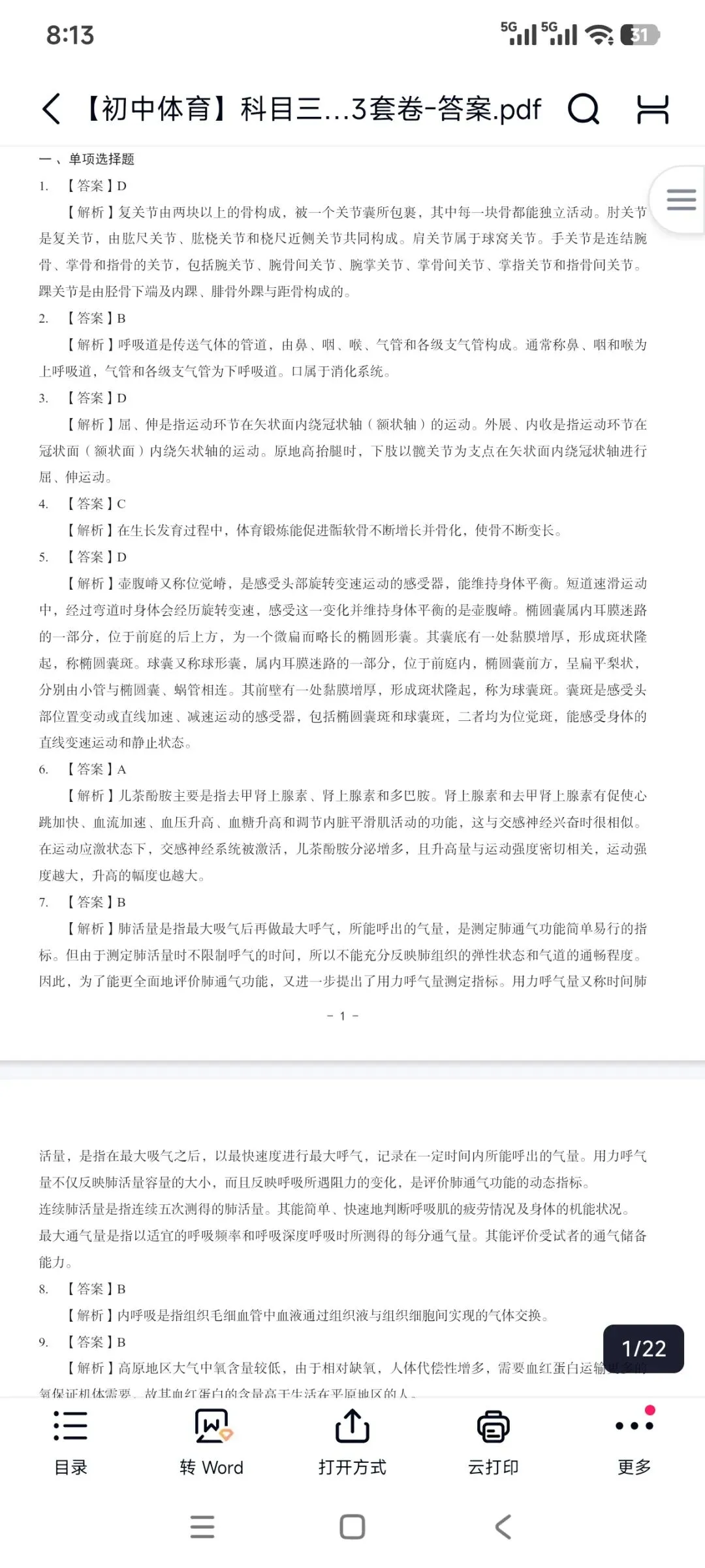 2022下初中体育历年真题试卷(精选)+解析.pdf