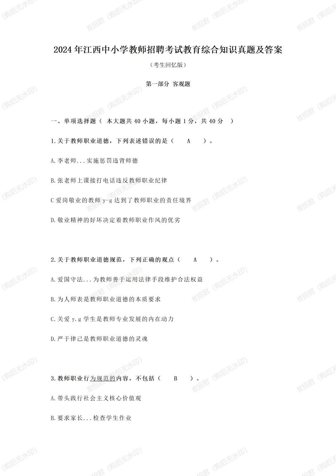 2024年上半年教师资格证科三《初中语文》考试真题及答案,2024年上教师资格证笔试考试真题及答案!