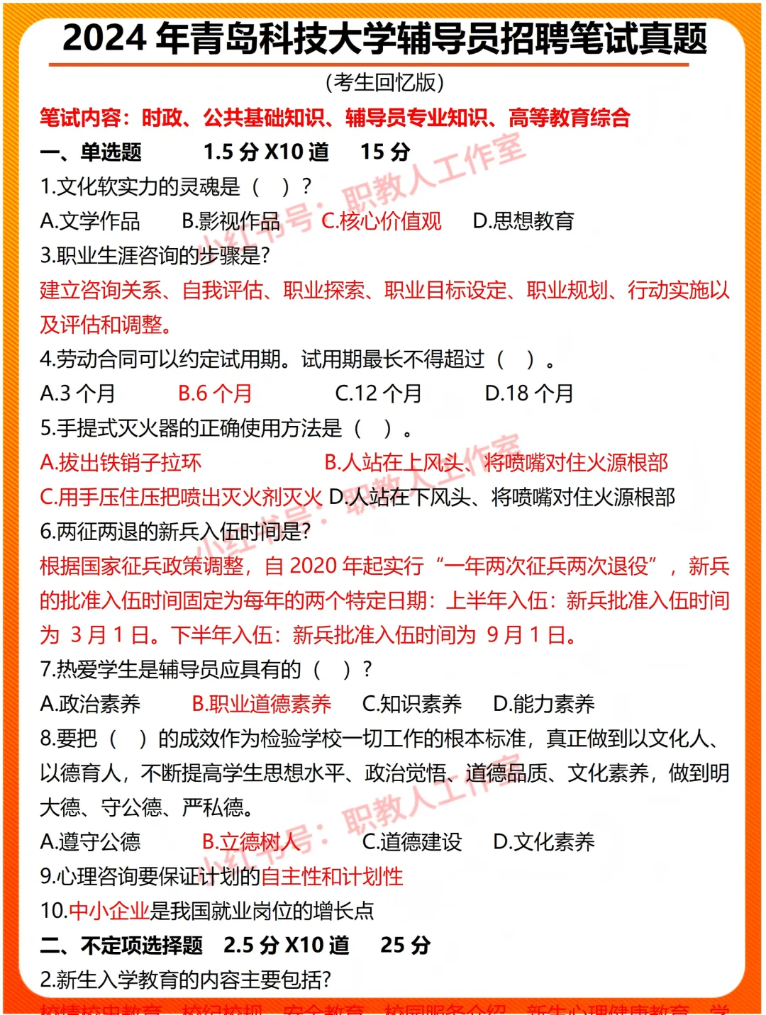 硬核干货:辅导员招聘考试模拟试卷(八),帮你查漏补缺,打卡做题.