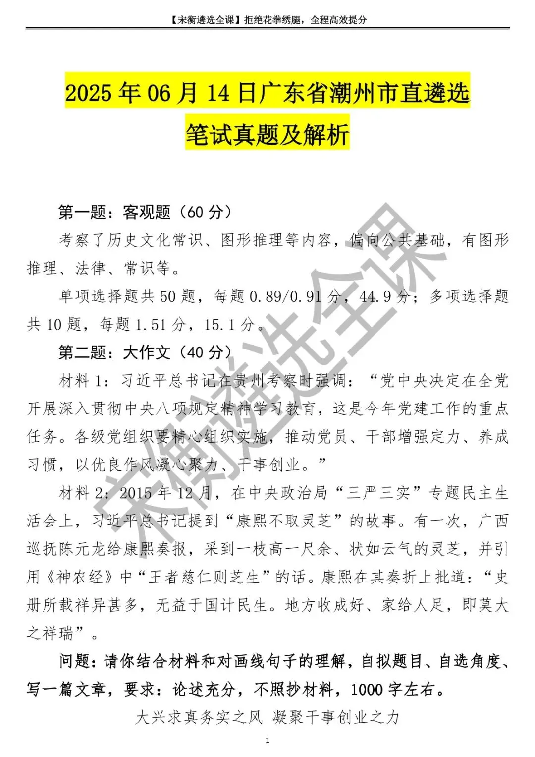 2025年06月14日广东省潮州市直遴选笔试真题及解析