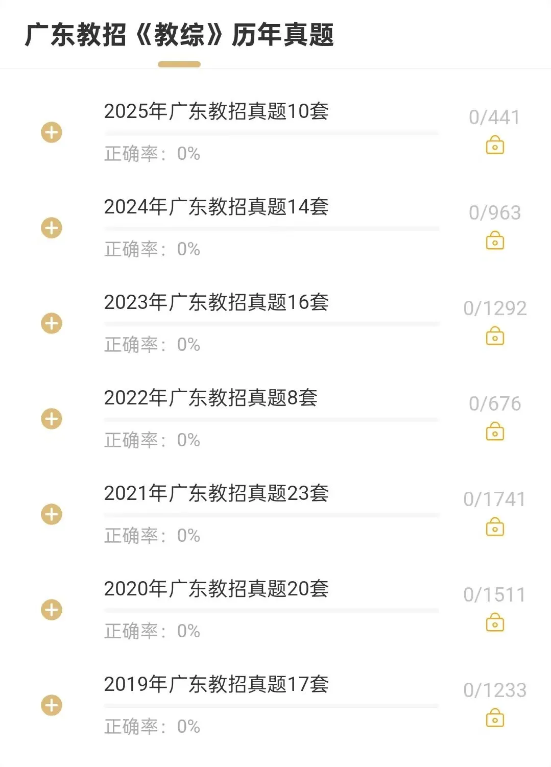 2025年广东教综真题10套、2024年广东教综真题15套