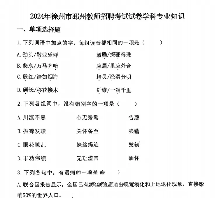 2024年徐州市邳州教师招聘考试试卷学科专业知识