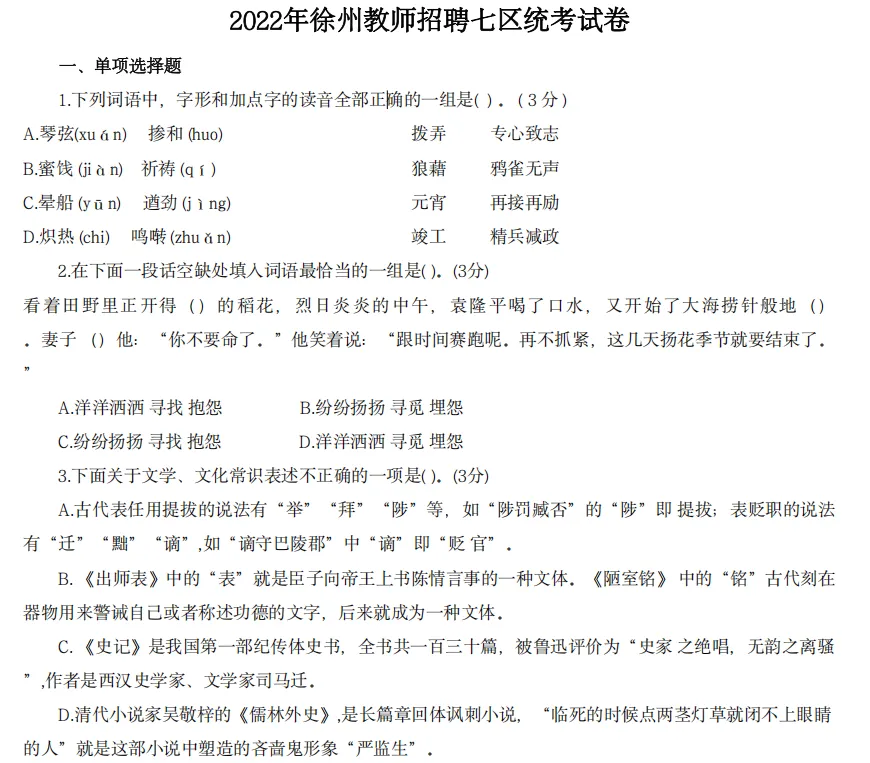 徐州教师招聘语文学科真题,包含真题+答案解析,以下仅展示目录:
