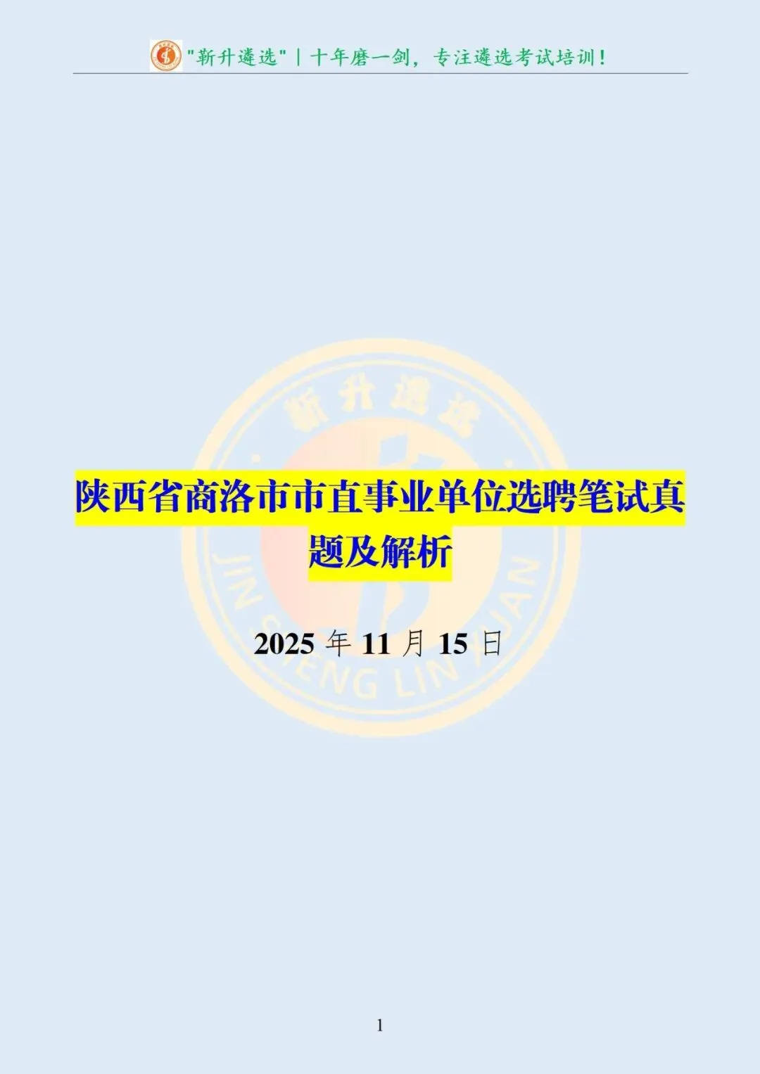 真题分享|2025年11月15日|陕西省商洛市市直事业单位选聘笔试真题及解析