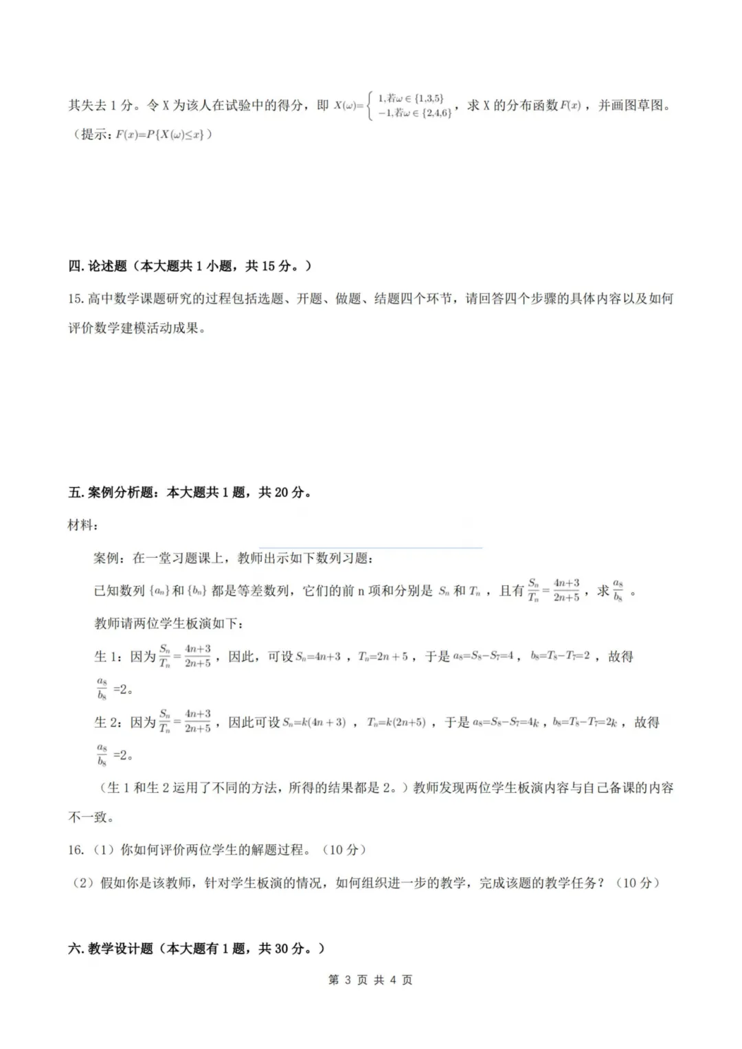 26上教资笔试高中数学科三历年真题更新至25年含答案可打印
