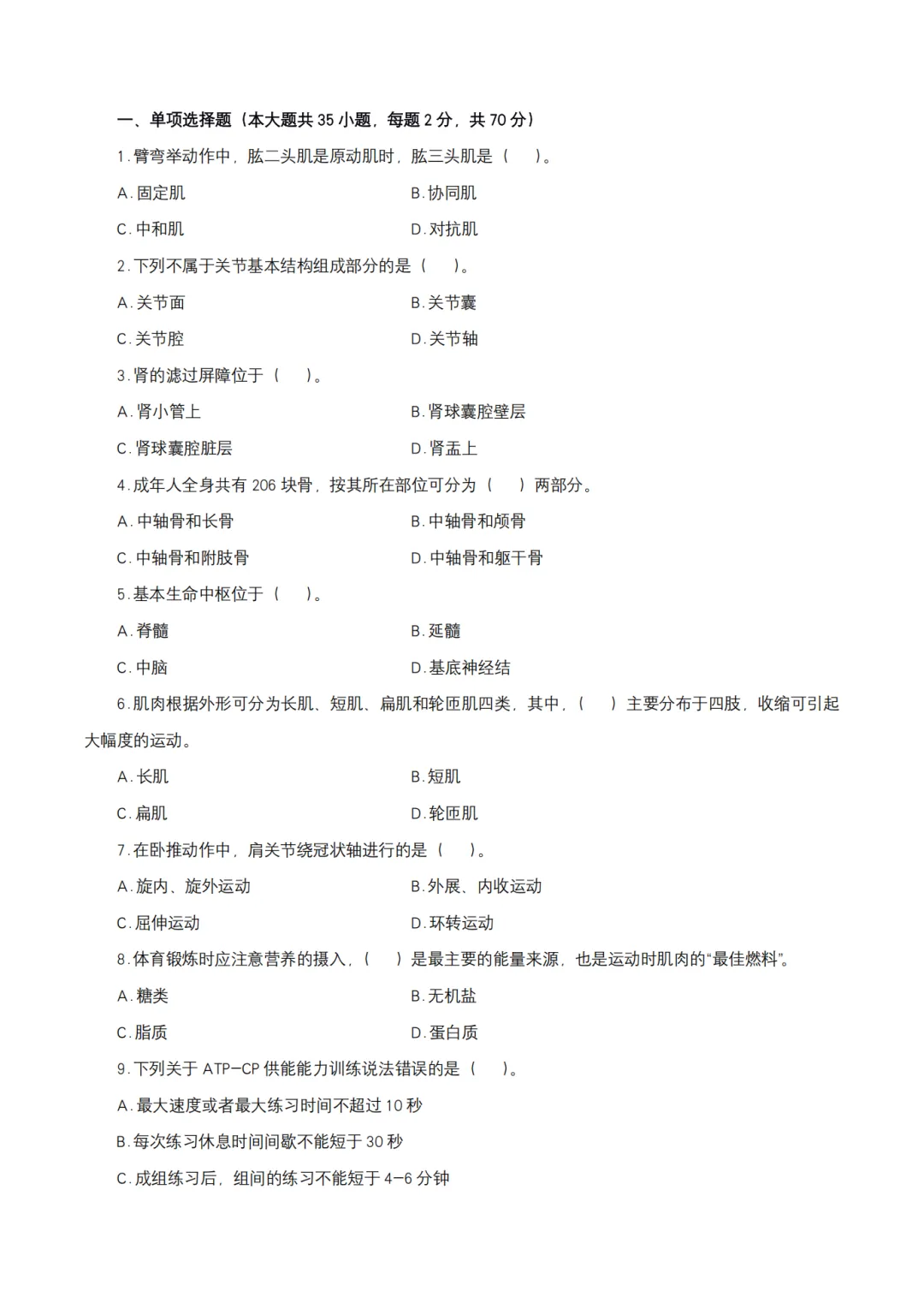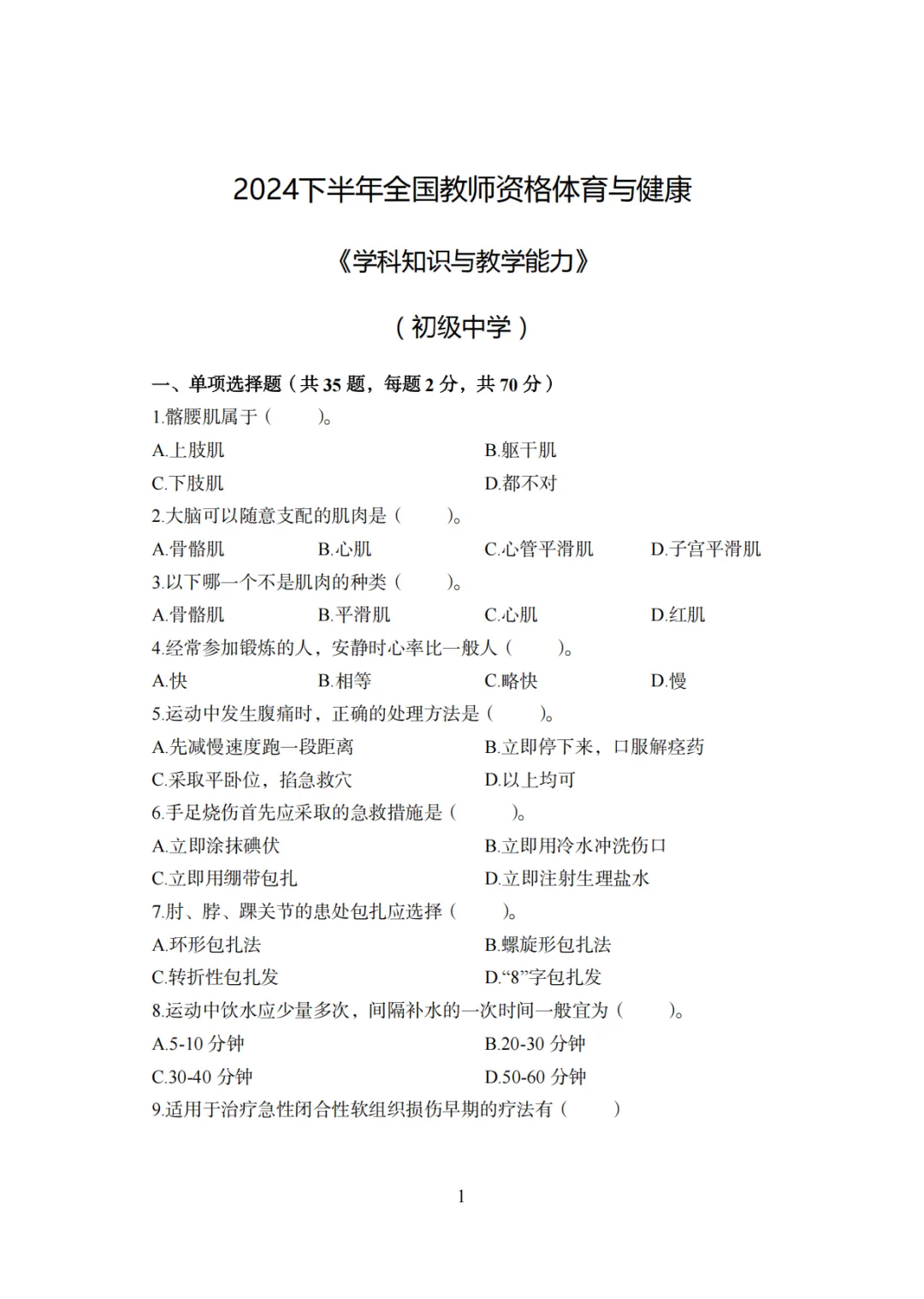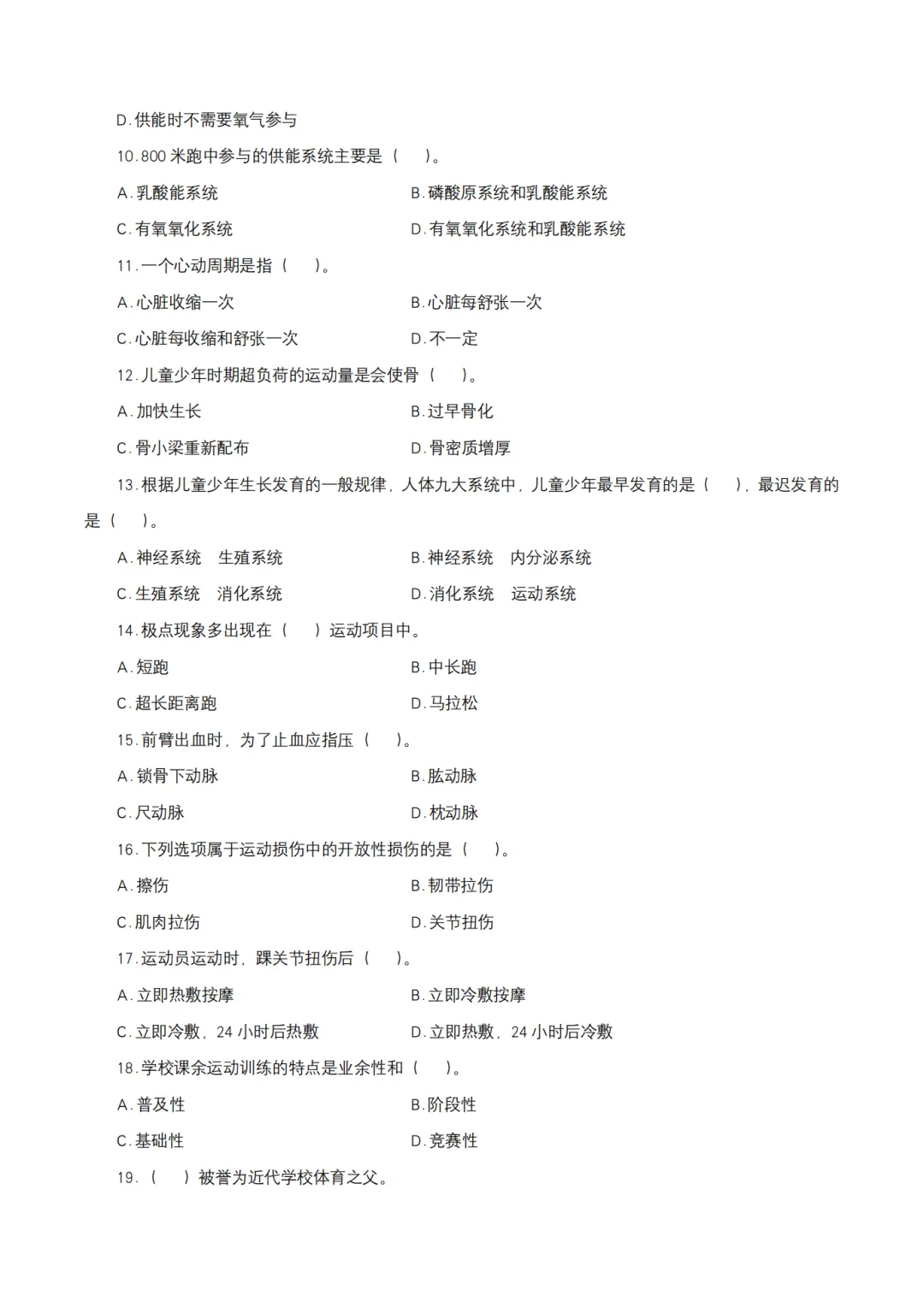 >26上教资笔试初中体育科三历年真题更新至25年含答案可打印