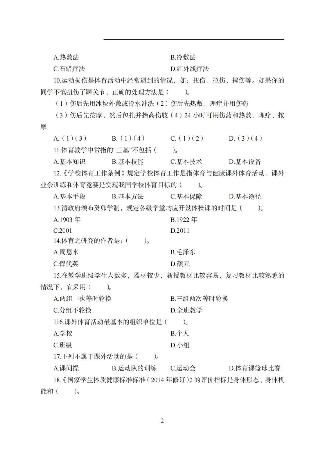 26上教资笔试高中体育科三历年真题更新至25年含答案可打印