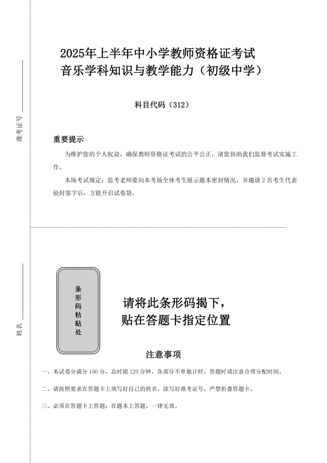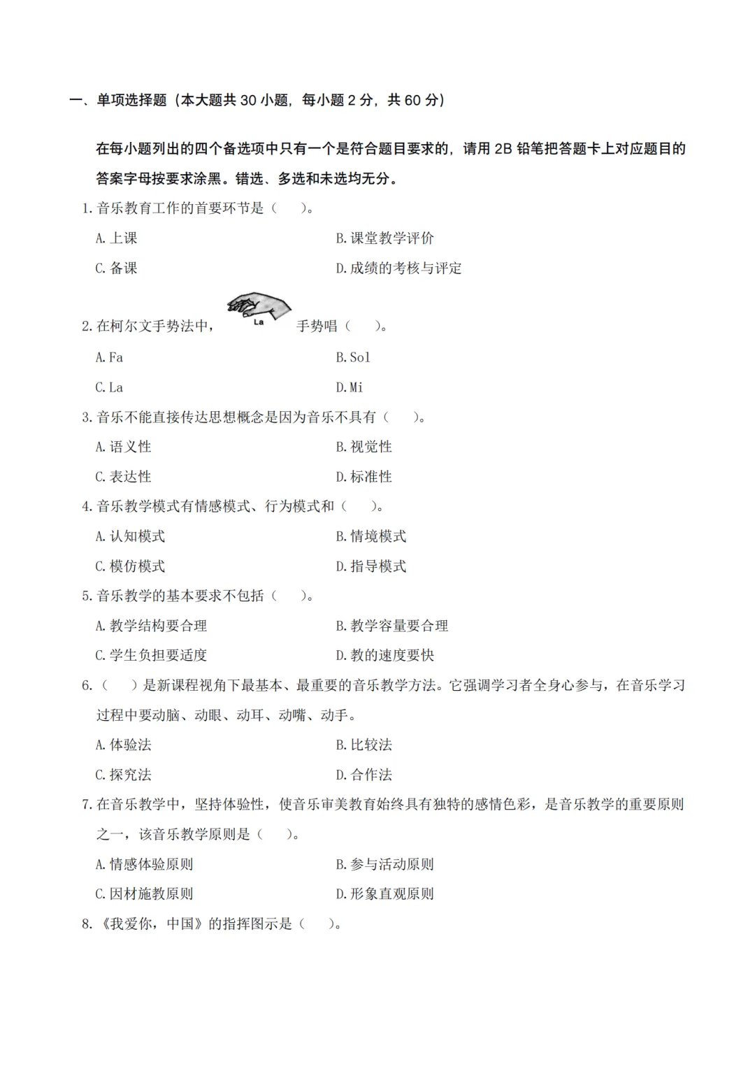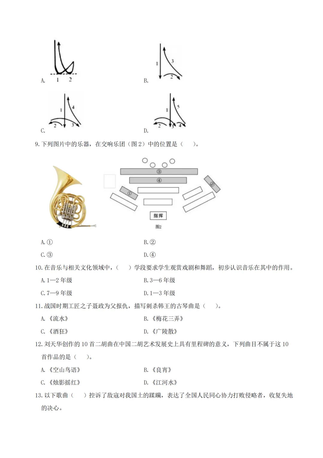 26上教资笔试初中音乐科三历年真题更新至25年含答案可打印