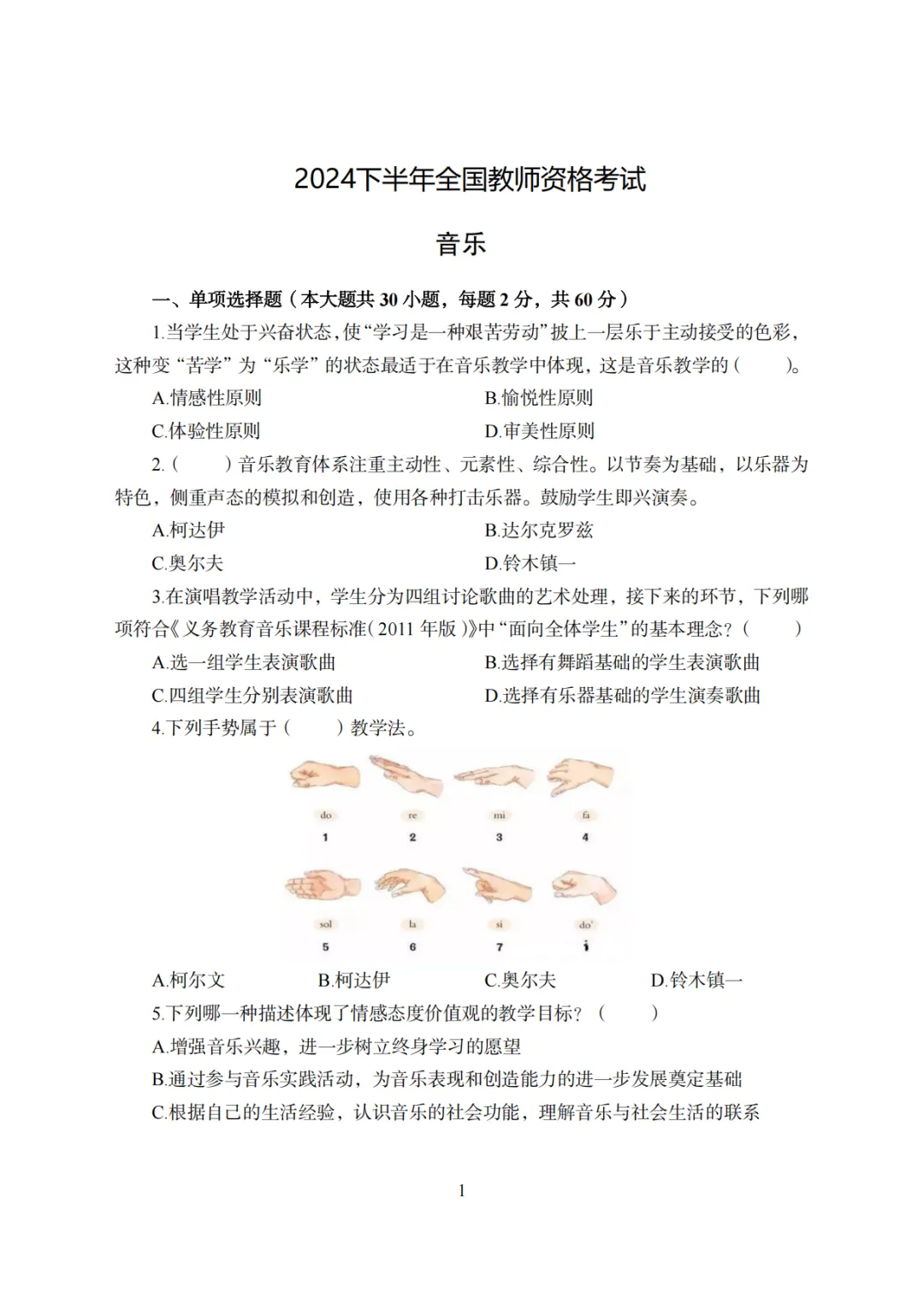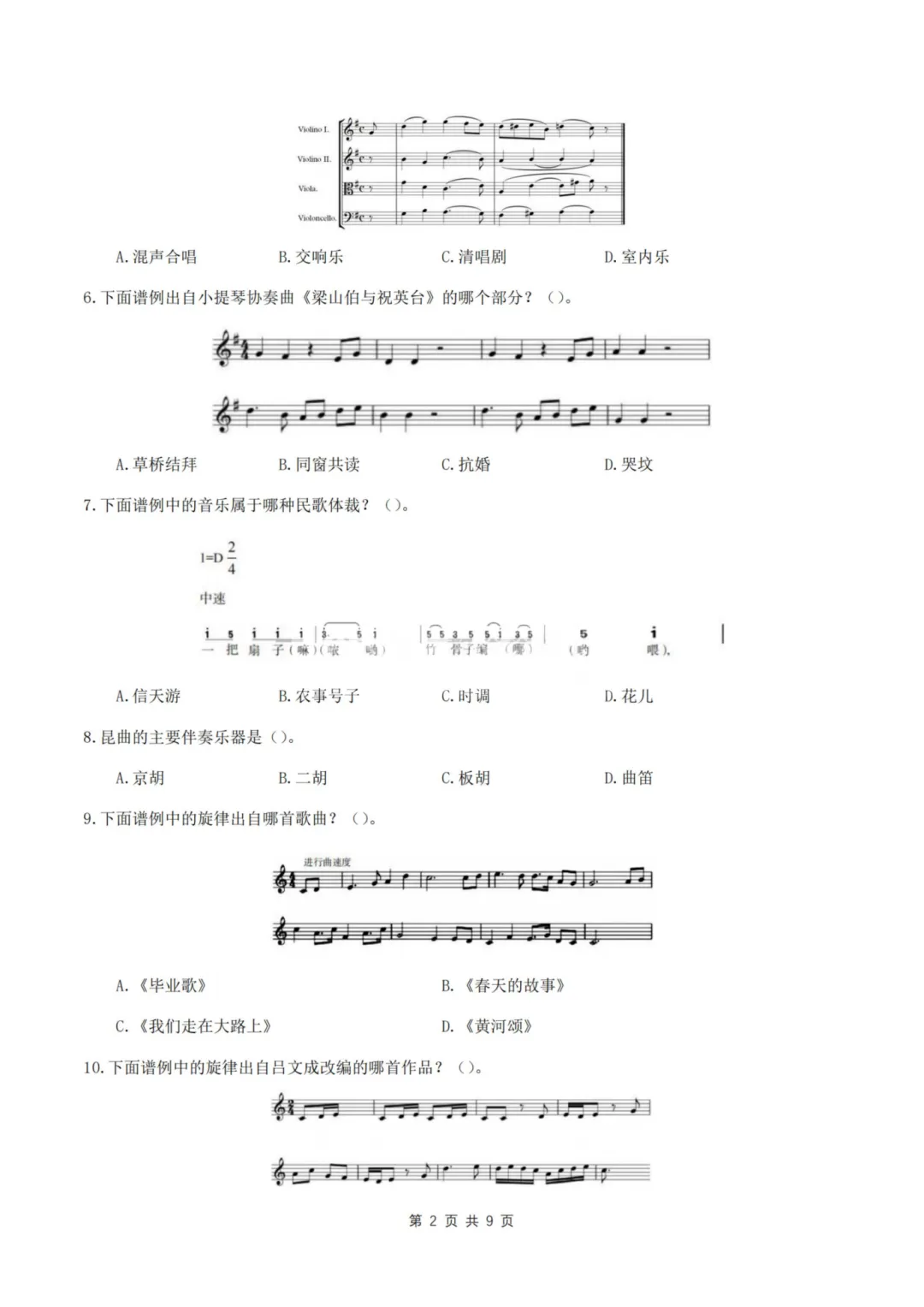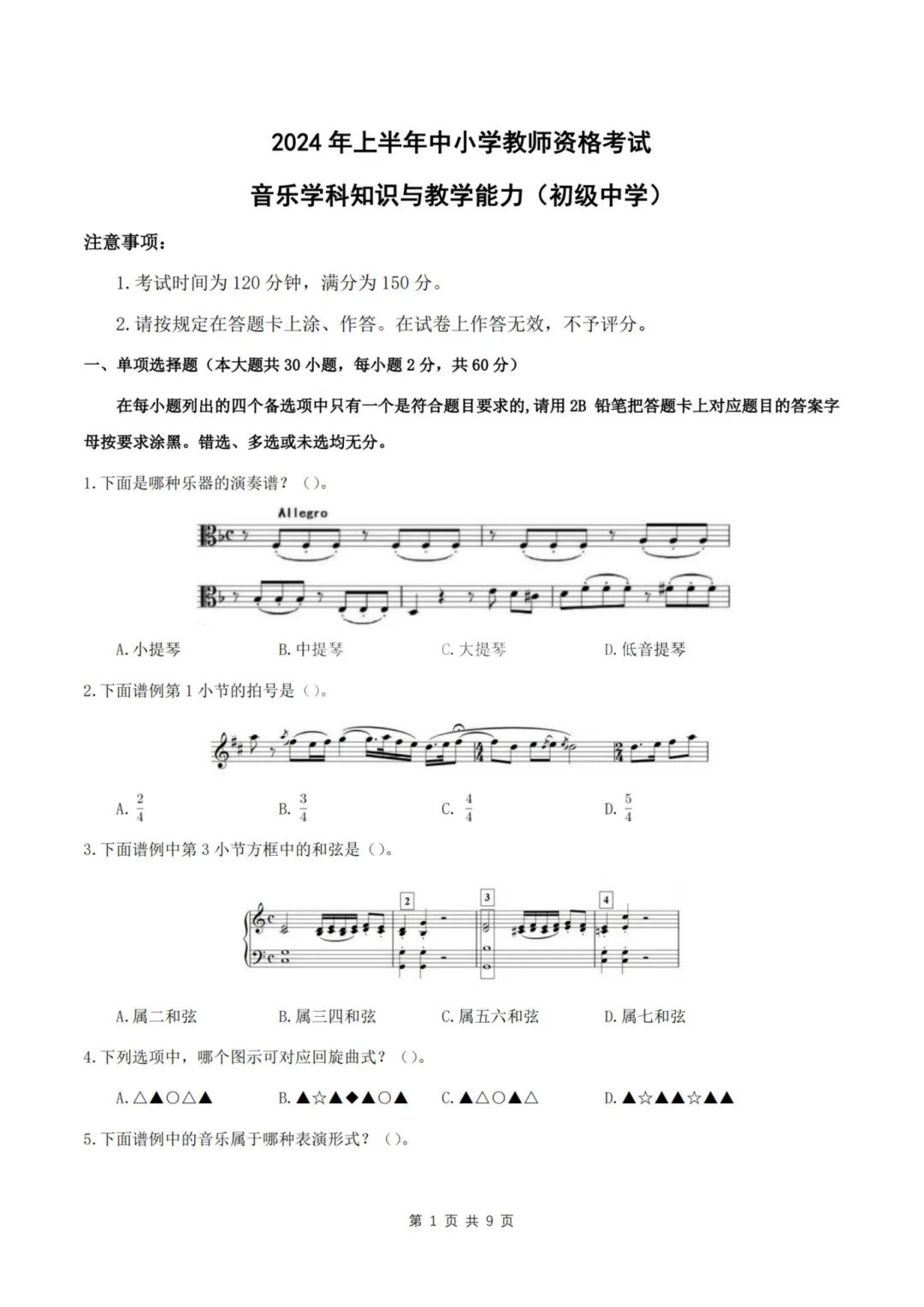 26上教资笔试初中音乐科三历年真题更新至25年含答案可打印